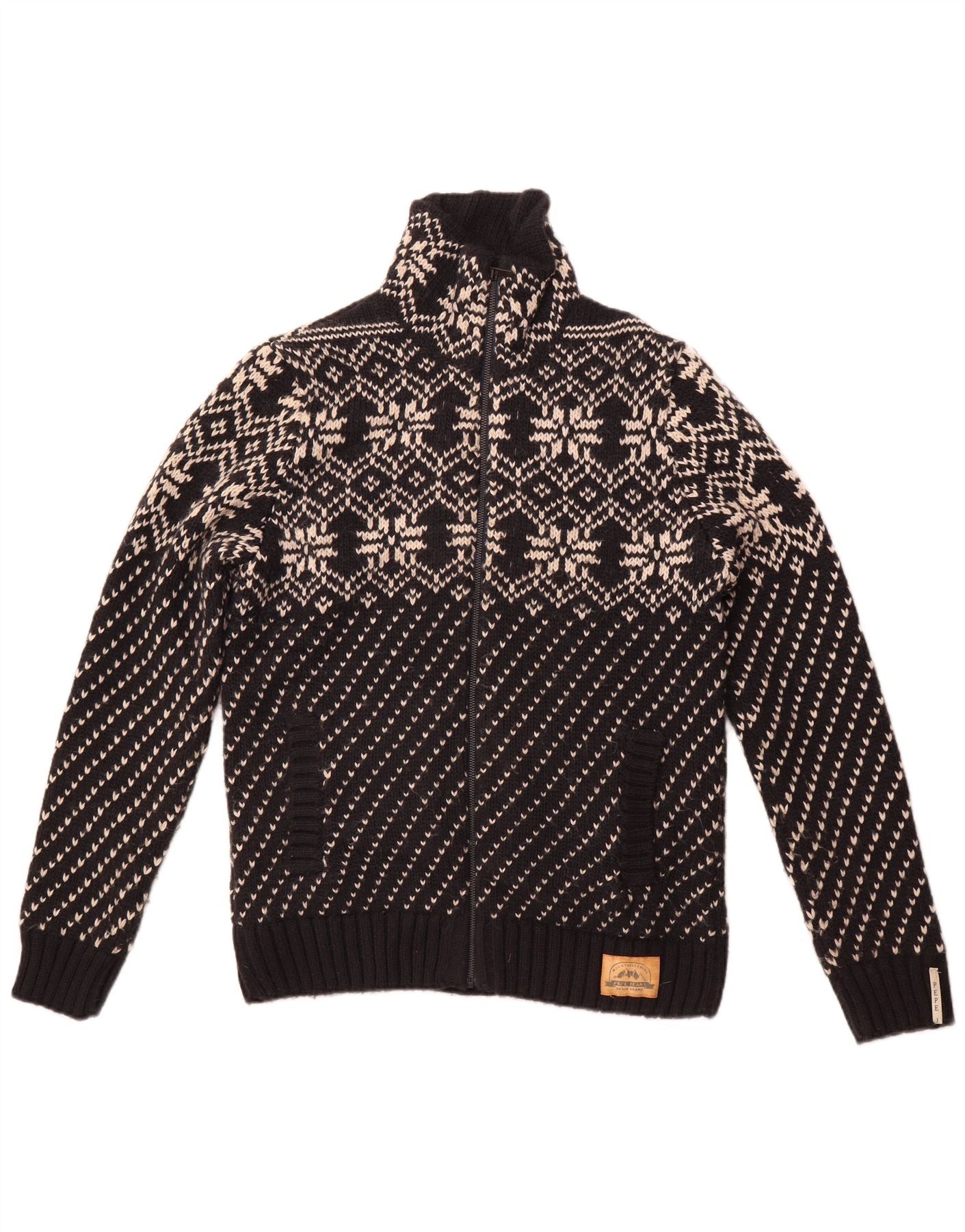 PEPE JEANS Mens Cardigan Sweater Large Black Fair Isle Acrylic