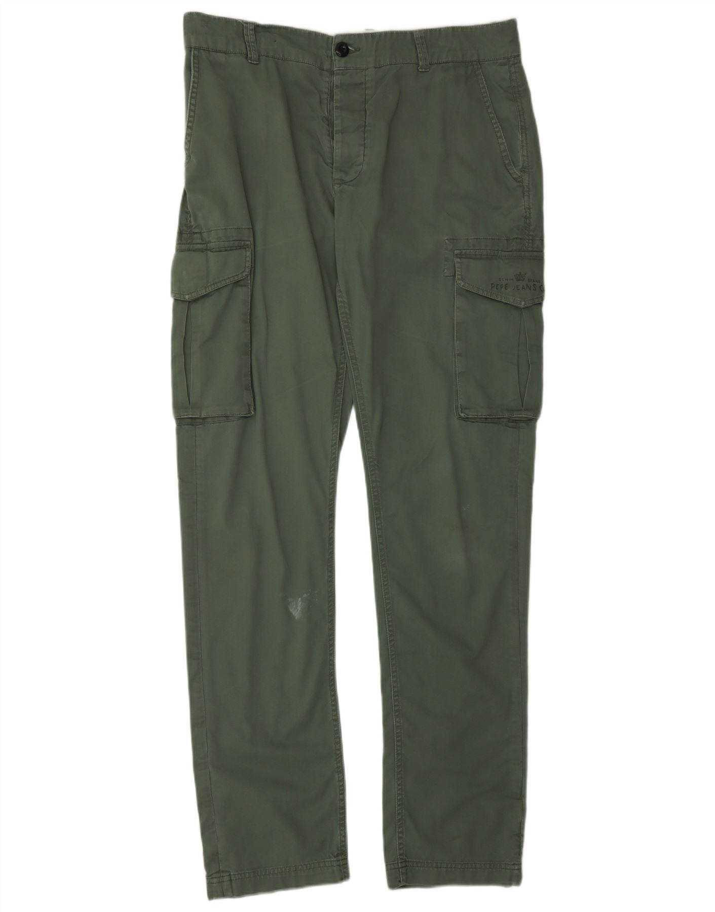 PEPE JEANS Mens Slim Cargo Trousers W33 L24 Green Cotton