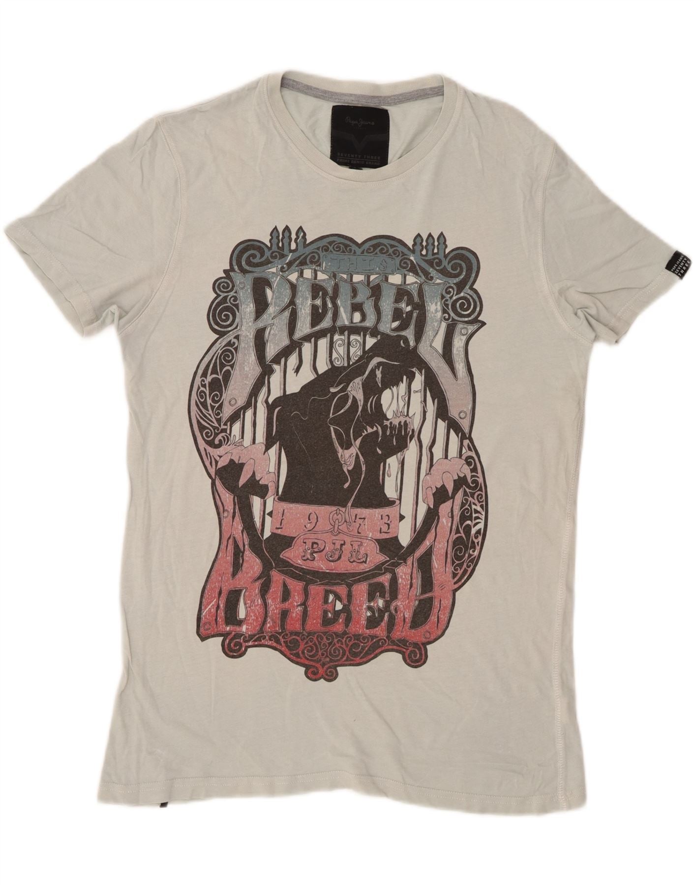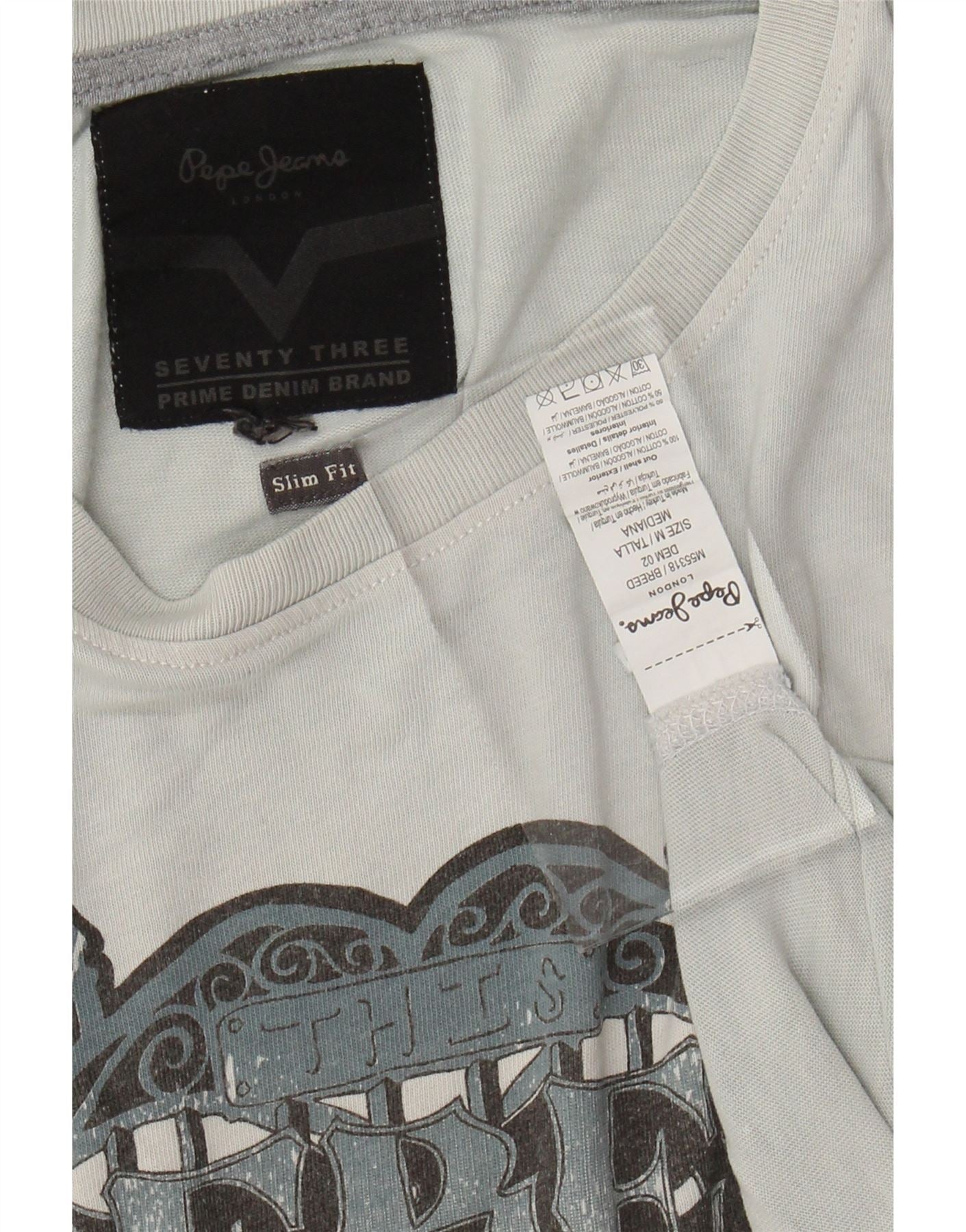 PEPE JEANS Mens Slim Fit Graphic T-Shirt Top Medium Blue Cotton