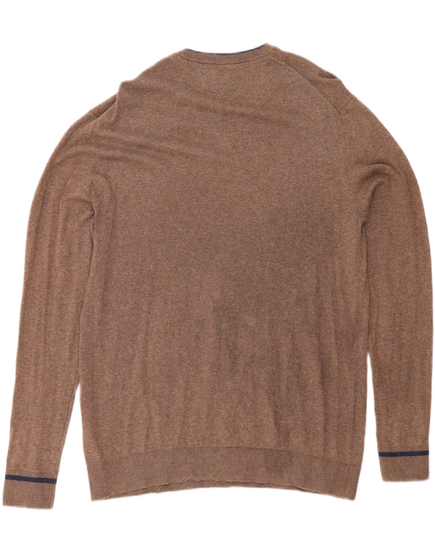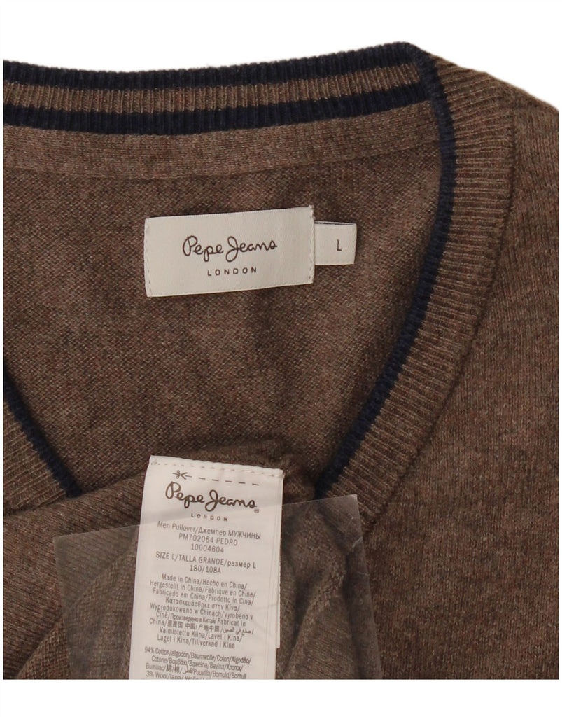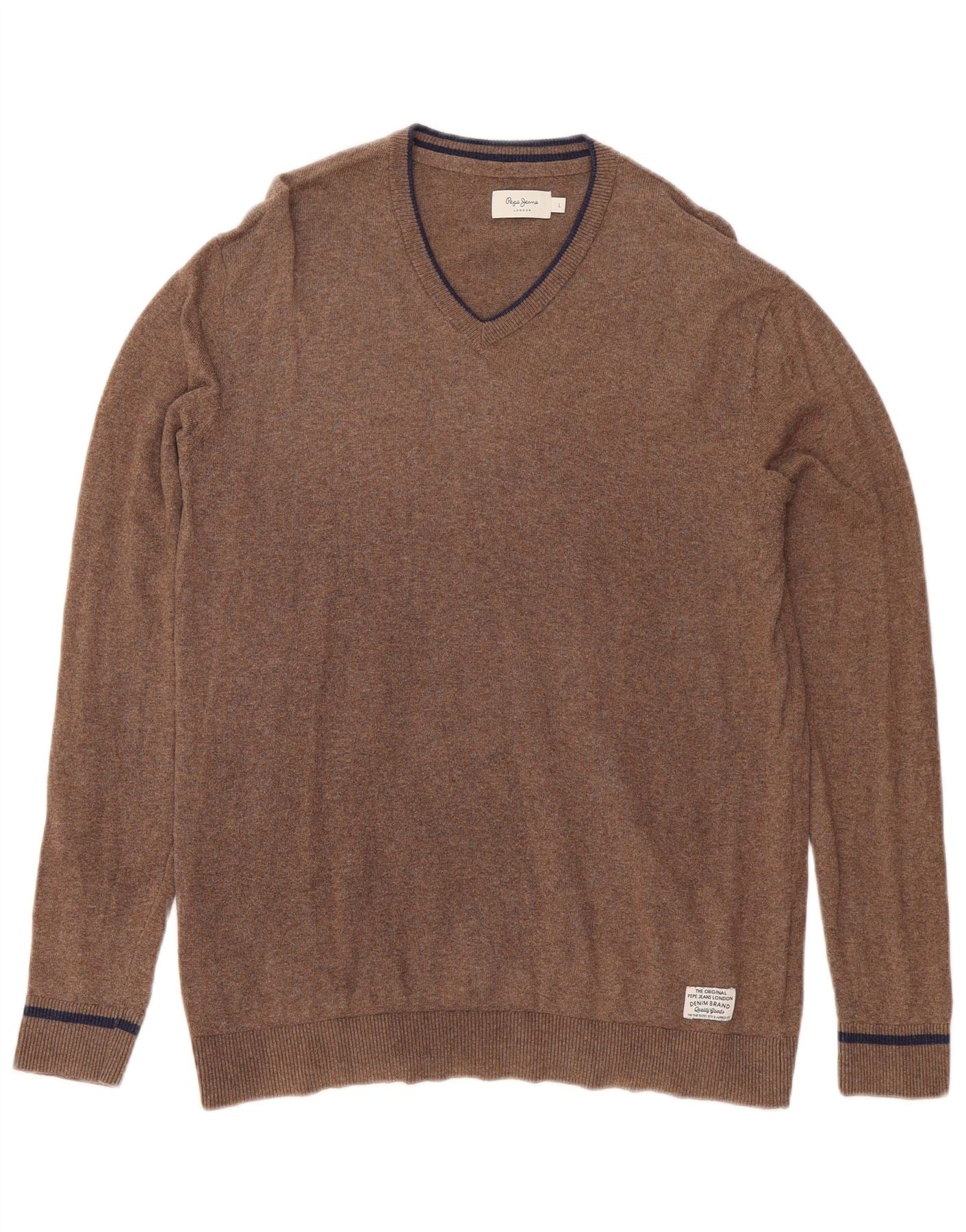 PEPE JEANS Mens V-Neck Jumper Sweater Large Brown Cotton