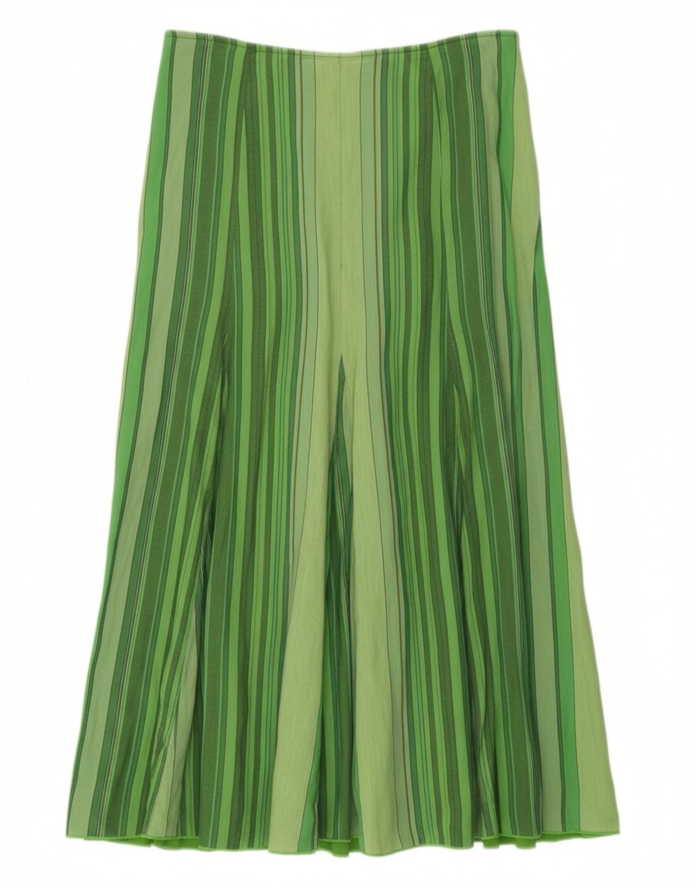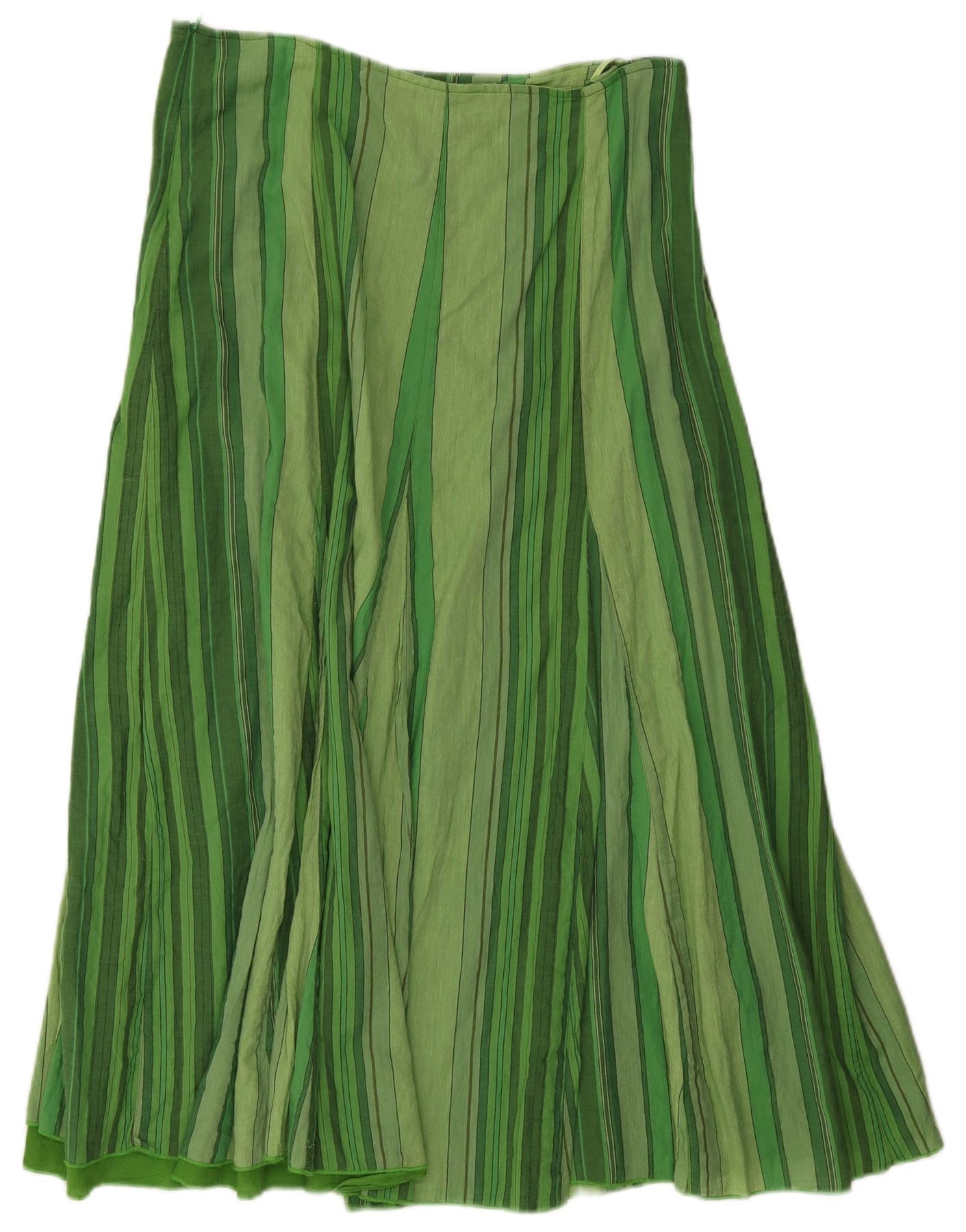 PER UNA Womens High Waist A-Line Skirt UK 14 Large W34 Green Striped