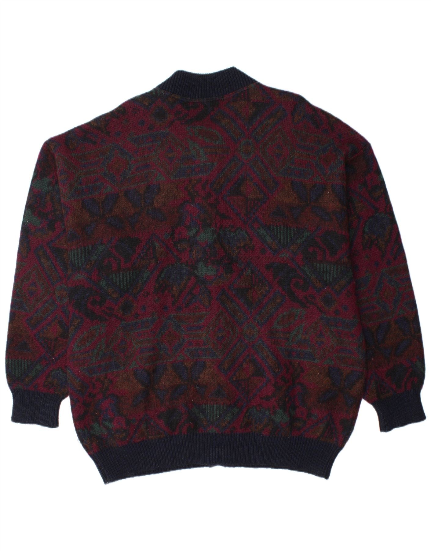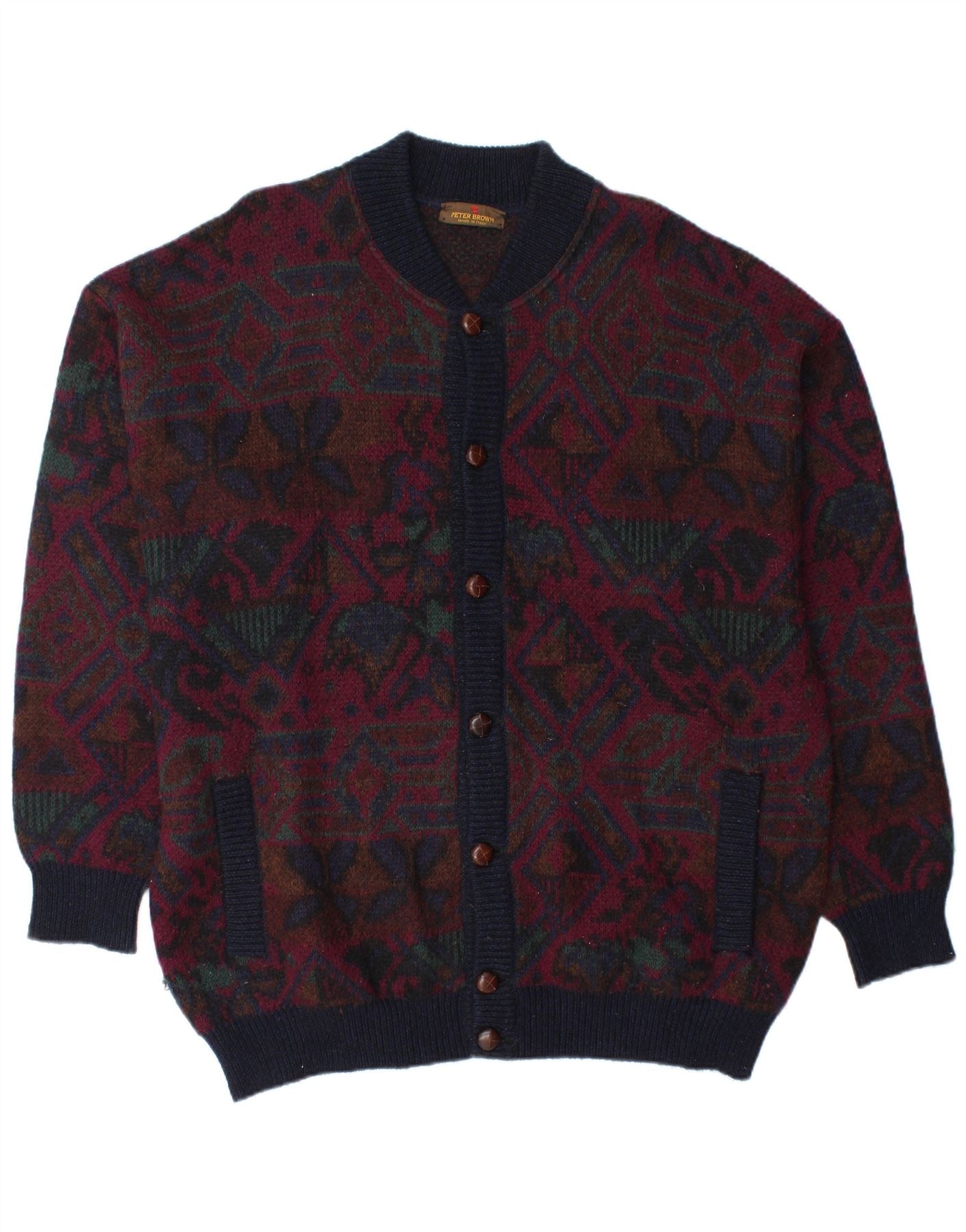 PETER BROWN Mens Cardigan Sweater IT 58 3XL Burgundy Fair Isle