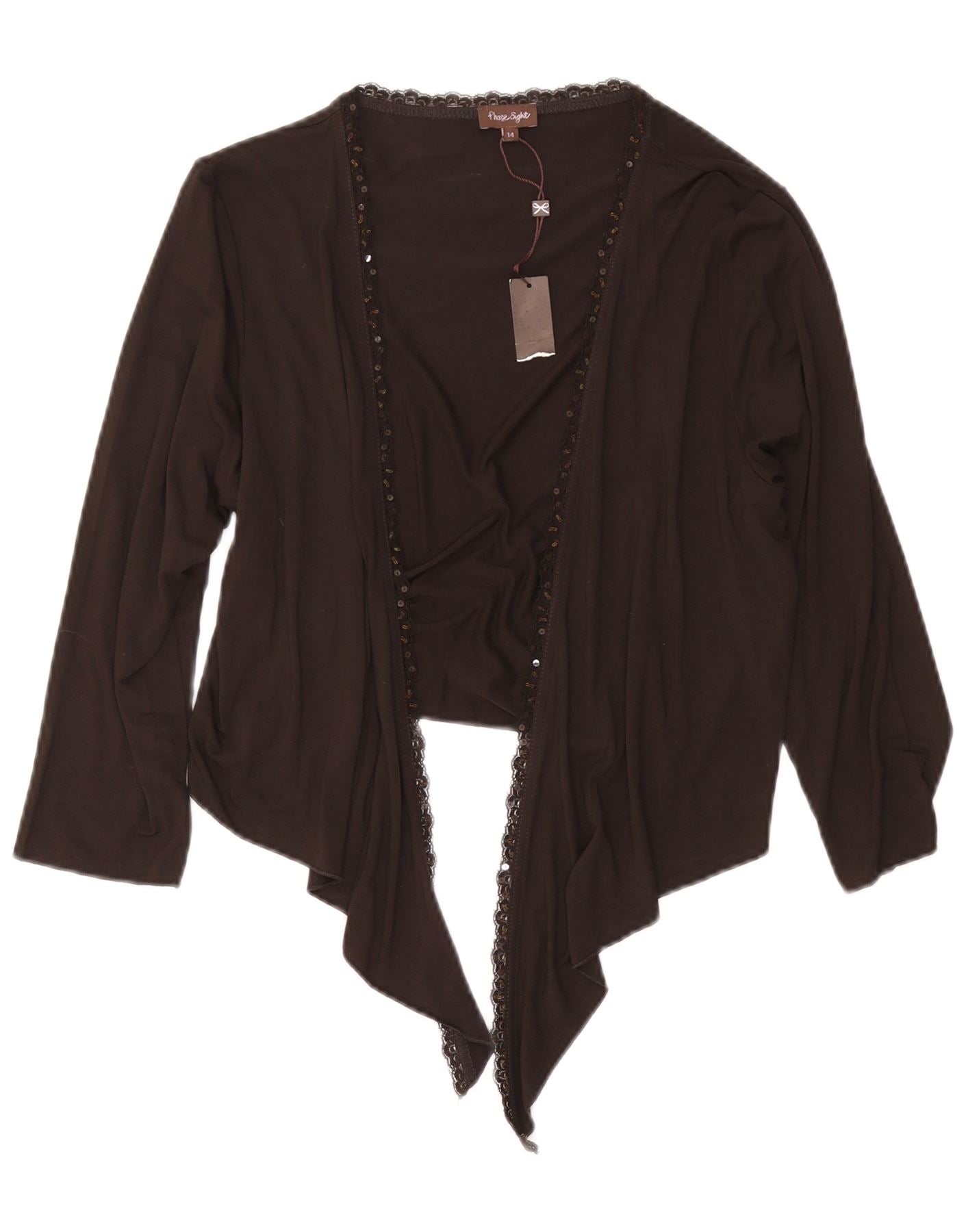 PHASE EIGHT Womens 3/4 Sleeve Crop Cardigan Top UK 14 Medium Brown