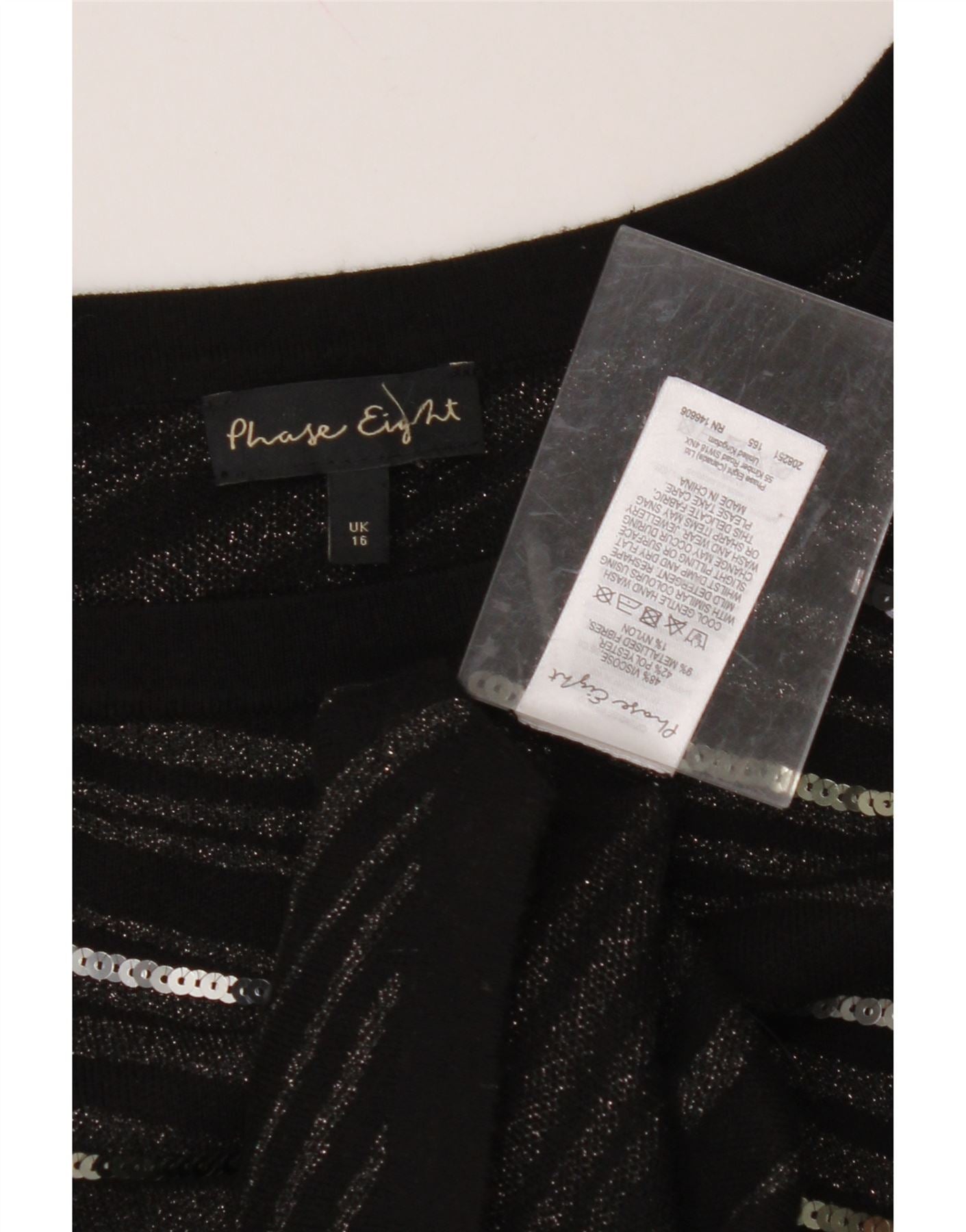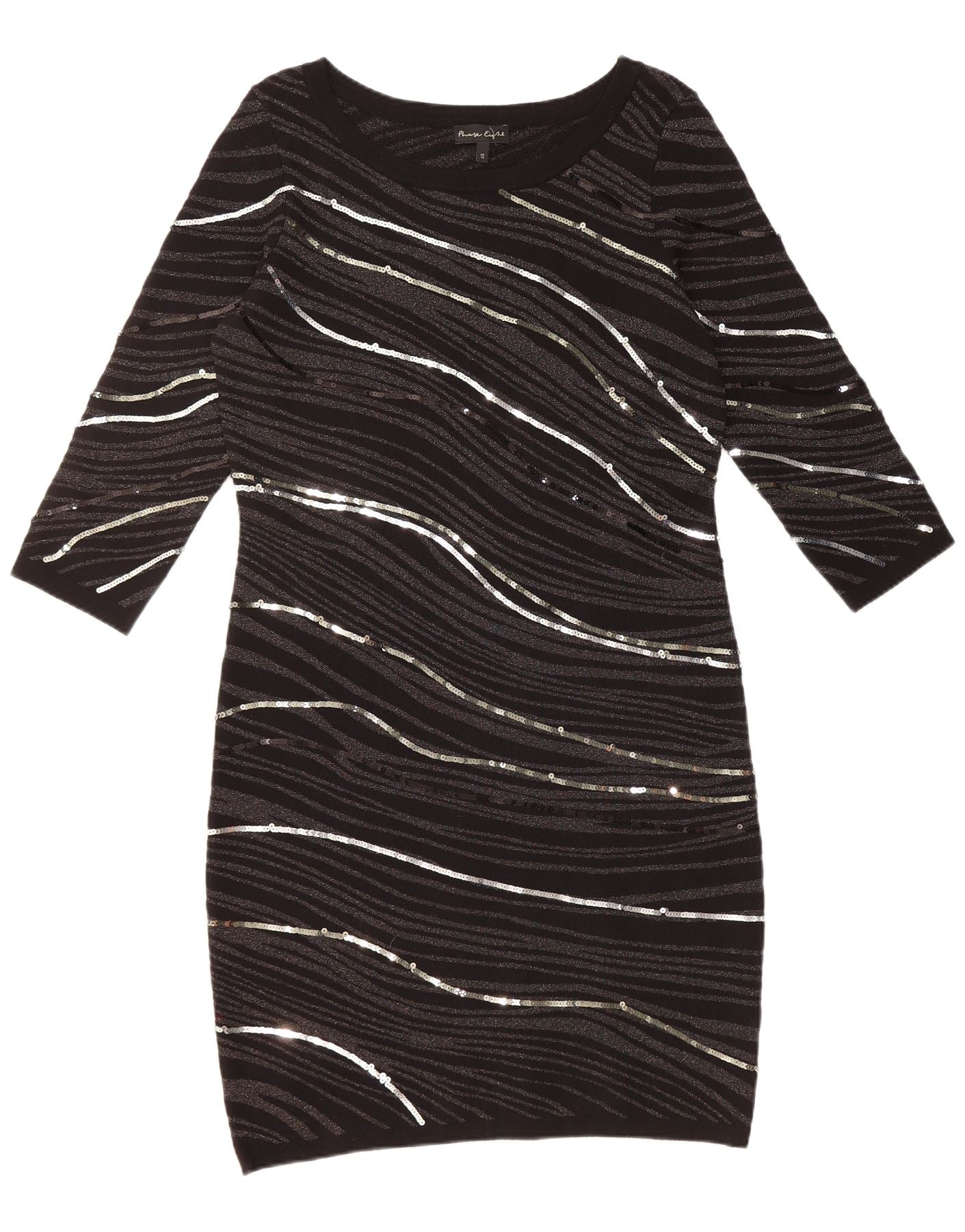 PHASE EIGHT Womens 3/4 Sleeve Sheath Dress UK 16 Large Black Striped
