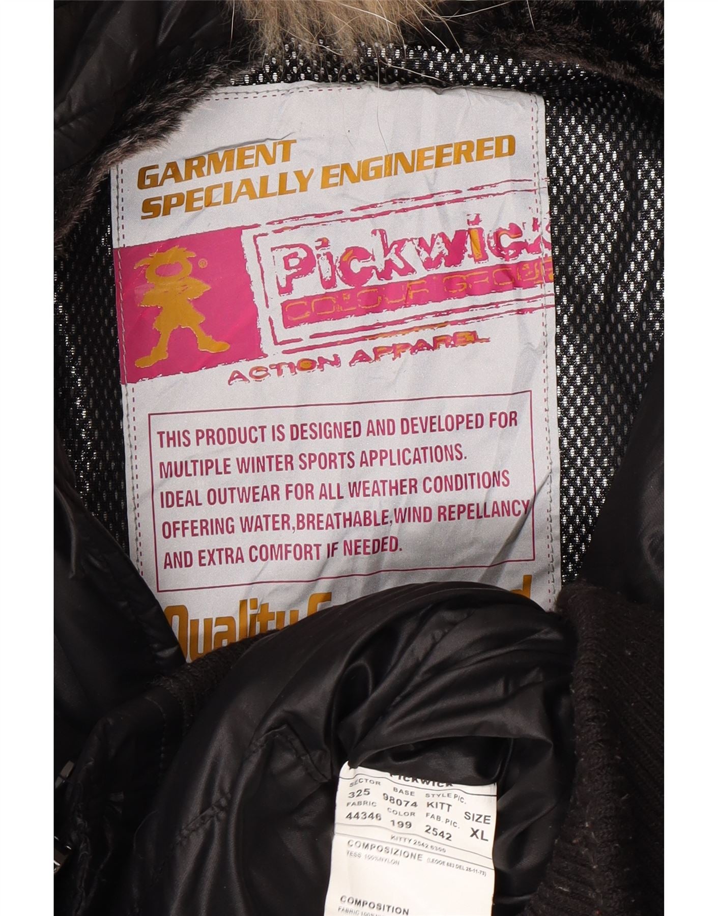PICKWICK Womens Hooded Padded Jacket UK 18 XL Black Nylon