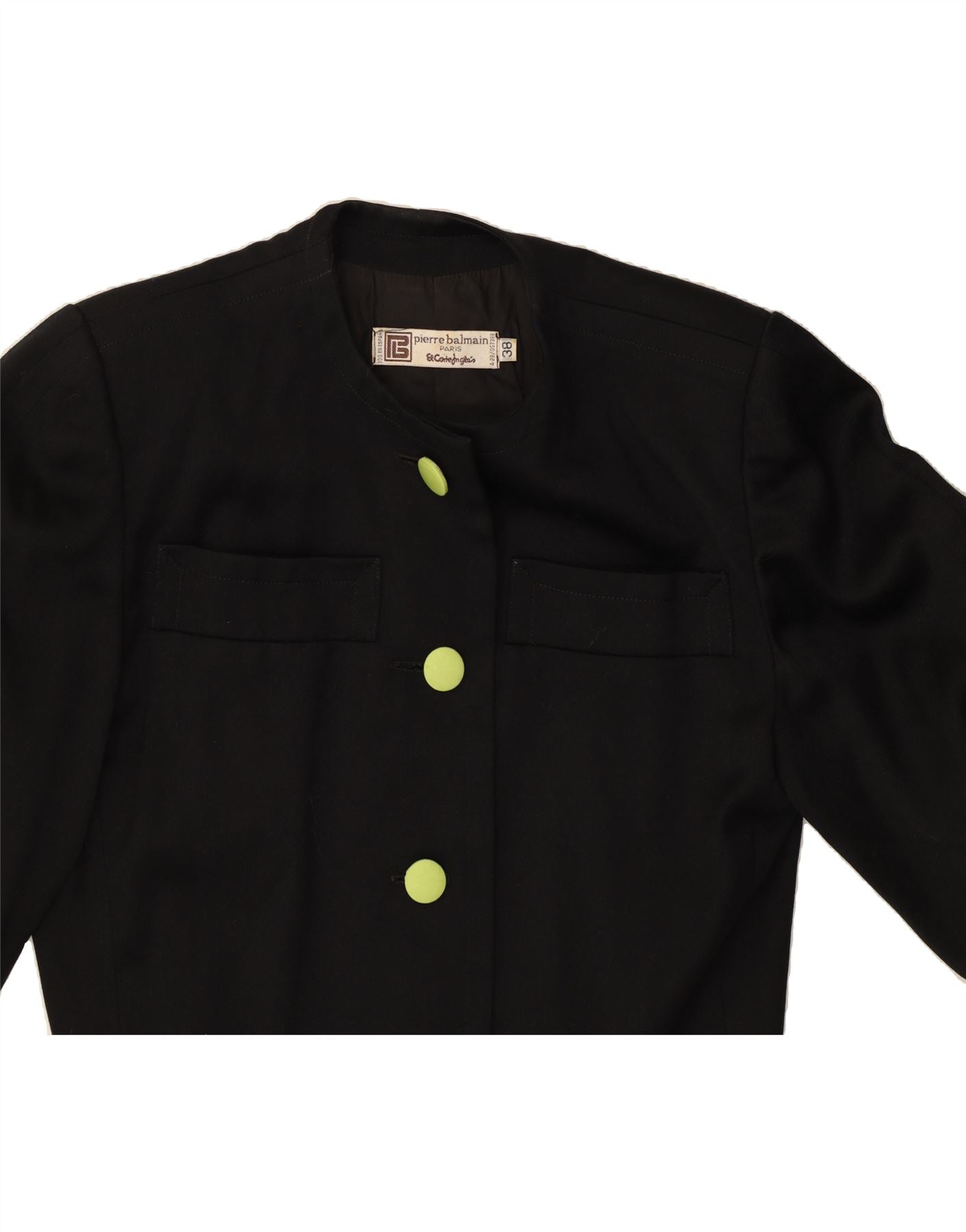 PIERRE BALMAIN Womens Crop 4 Button Blazer Jacket IT 38 XS Black
