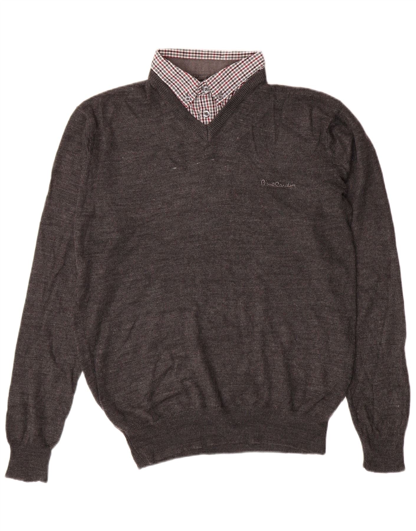 PIERRE CARDIN Mens V-Neck Jumper Sweater Medium Grey Acrylic Classic