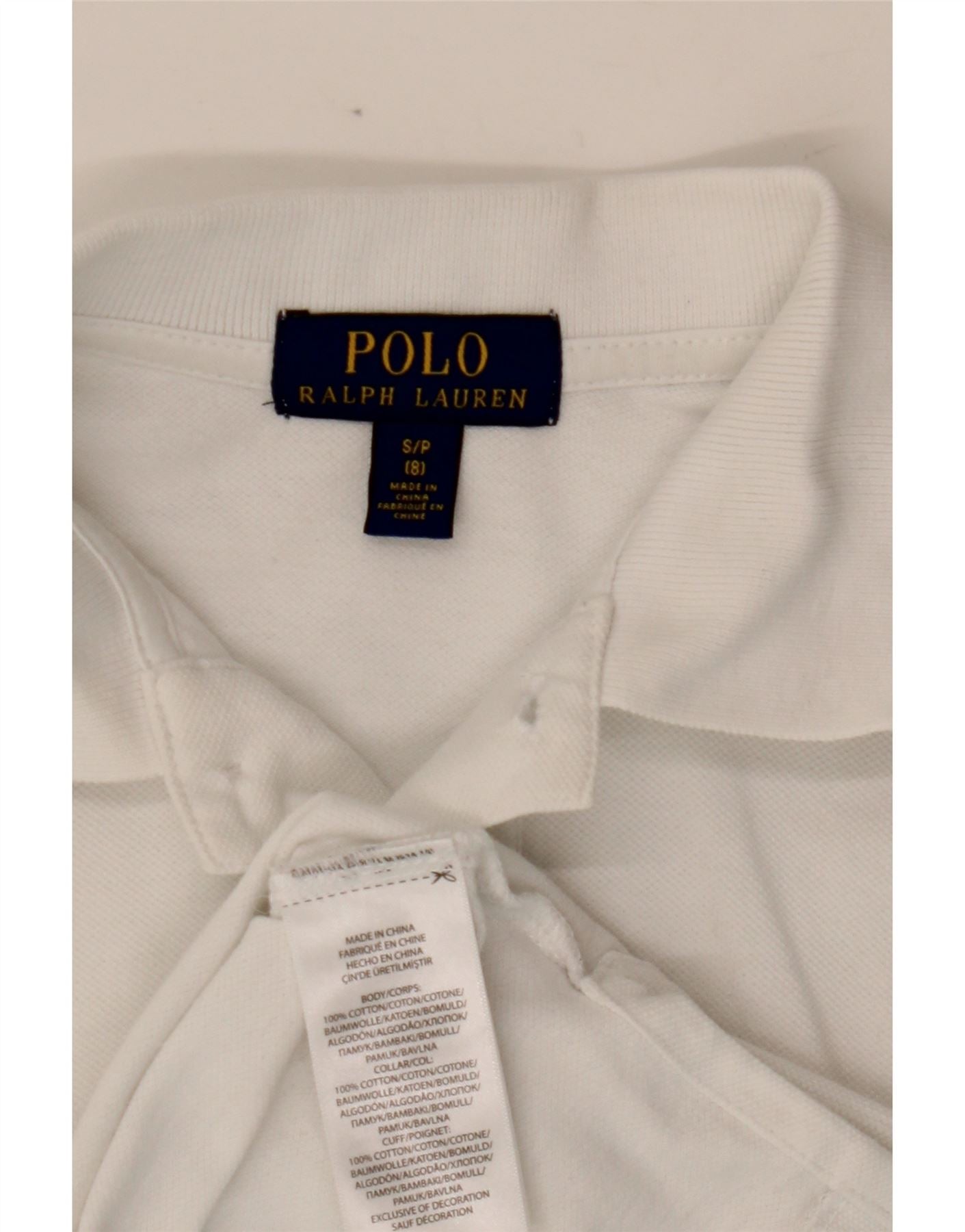 POLO RALPH LAUREN Boys Long Sleeve Polo Shirt 7-8 Years White Cotton