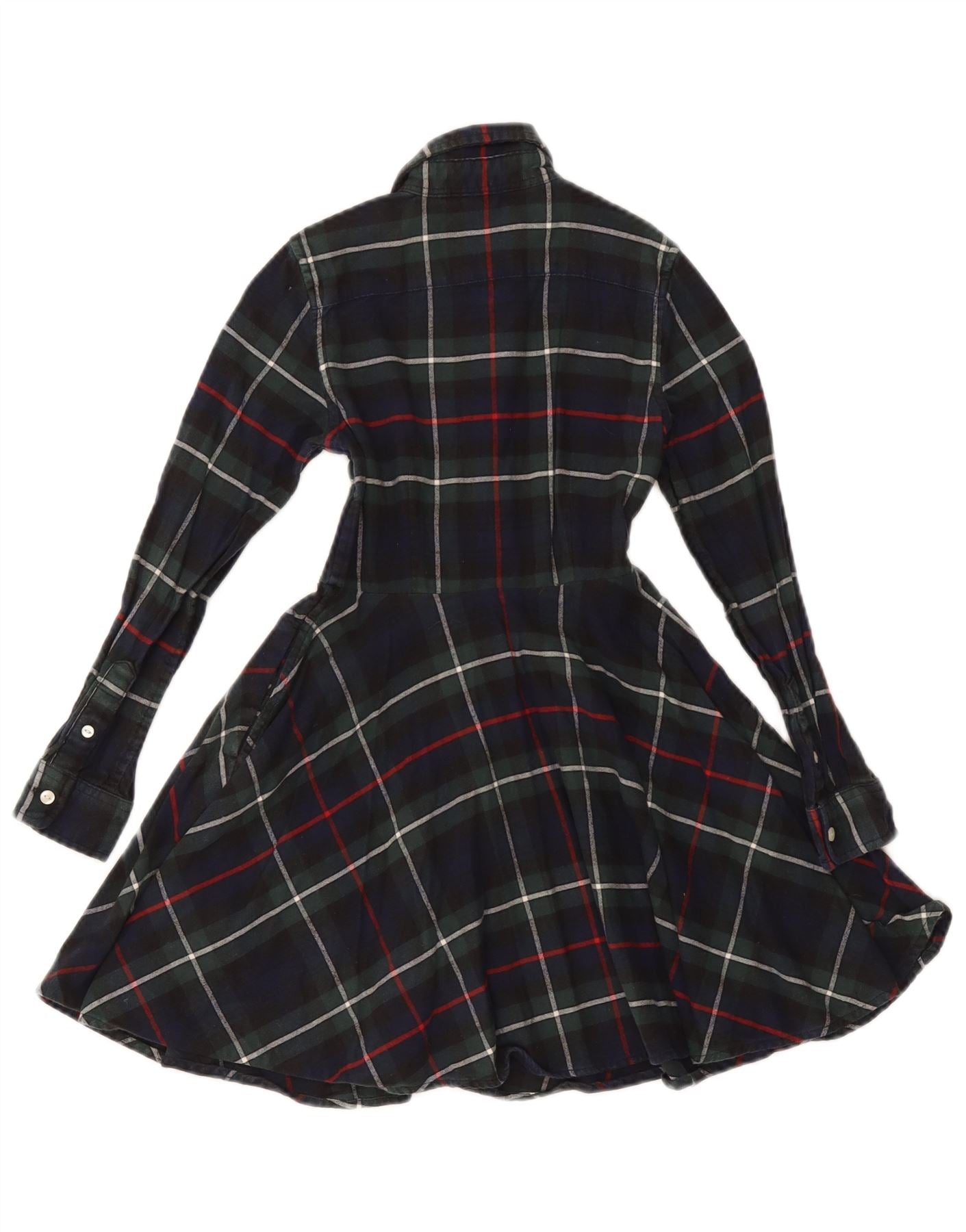 POLO RALPH LAUREN Girls Long Sleeve Shirt Dress 6-7 Years Navy Blue Check