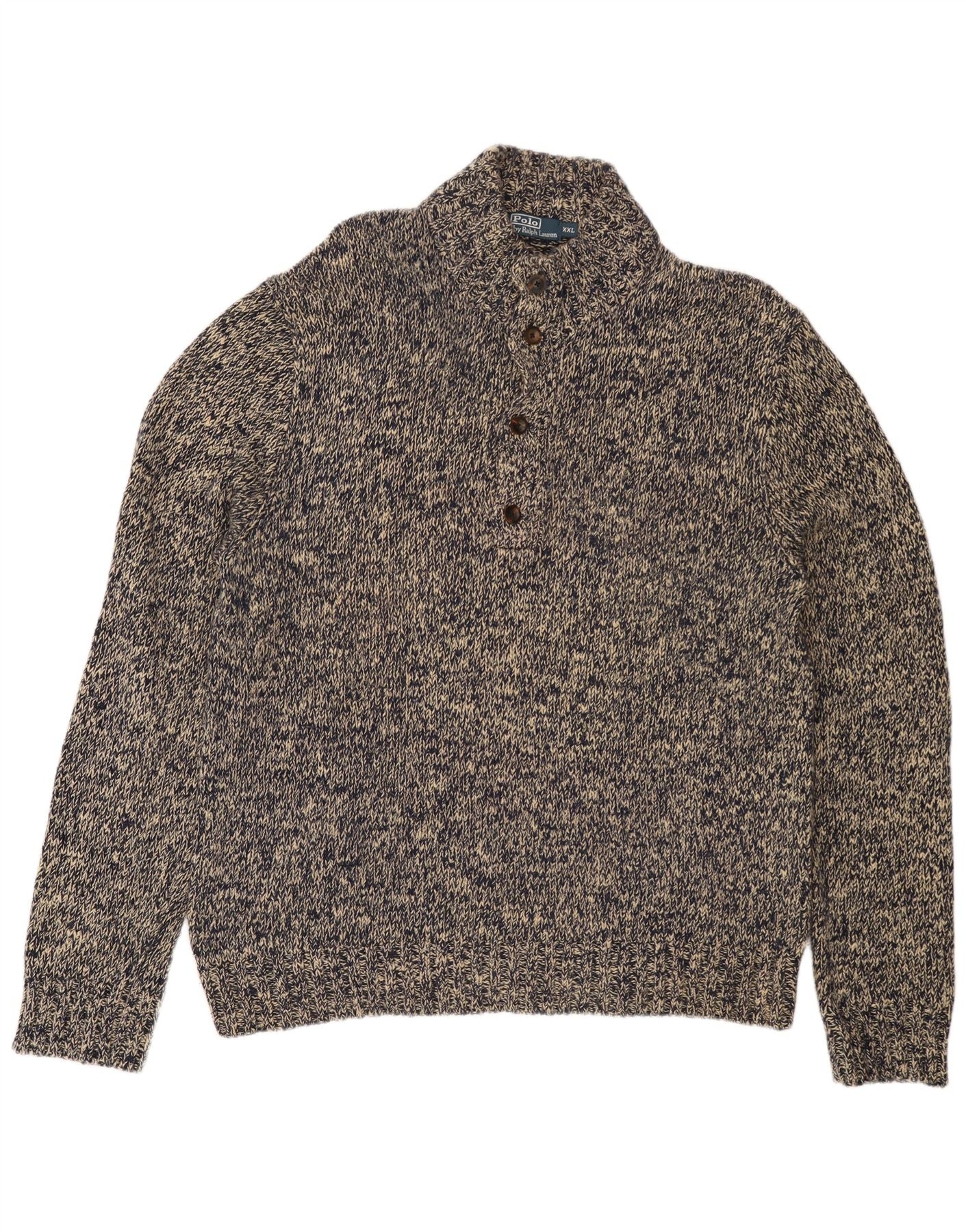 POLO RALPH LAUREN Mens Button Neck Jumper Sweater 2XL Grey Flecked Cotton
