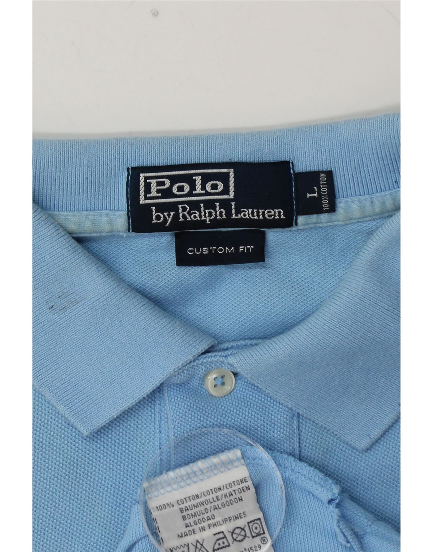 POLO RALPH LAUREN Mens Custom Fit Polo Shirt Large Blue Cotton