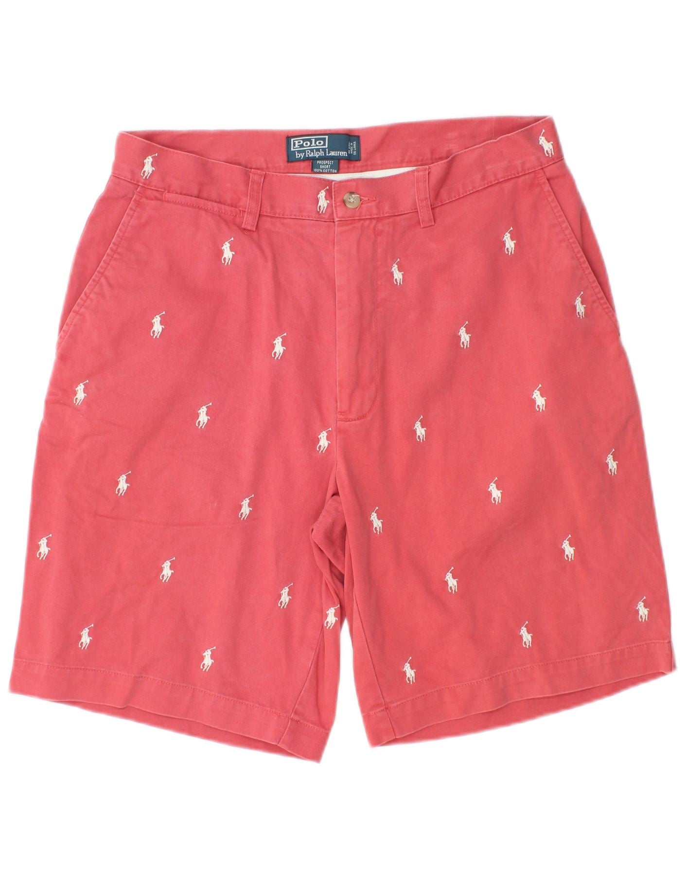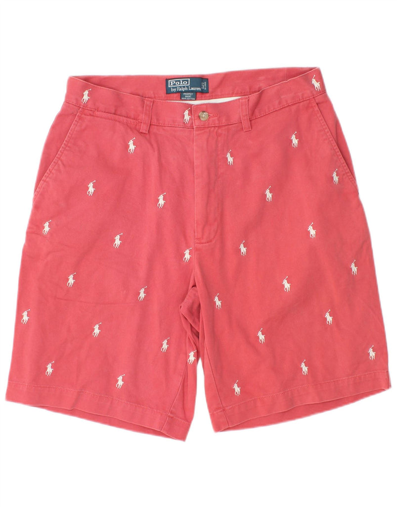 POLO RALPH LAUREN Mens Graphic Chino Shorts W32 Medium Pink Cotton Logo