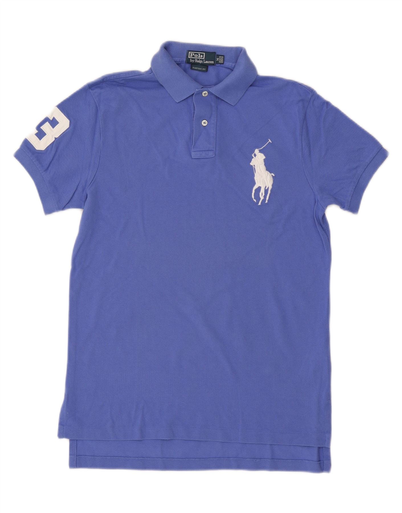 POLO RALPH LAUREN Mens Graphic Custom Fit Polo Shirt Medium Blue Cotton