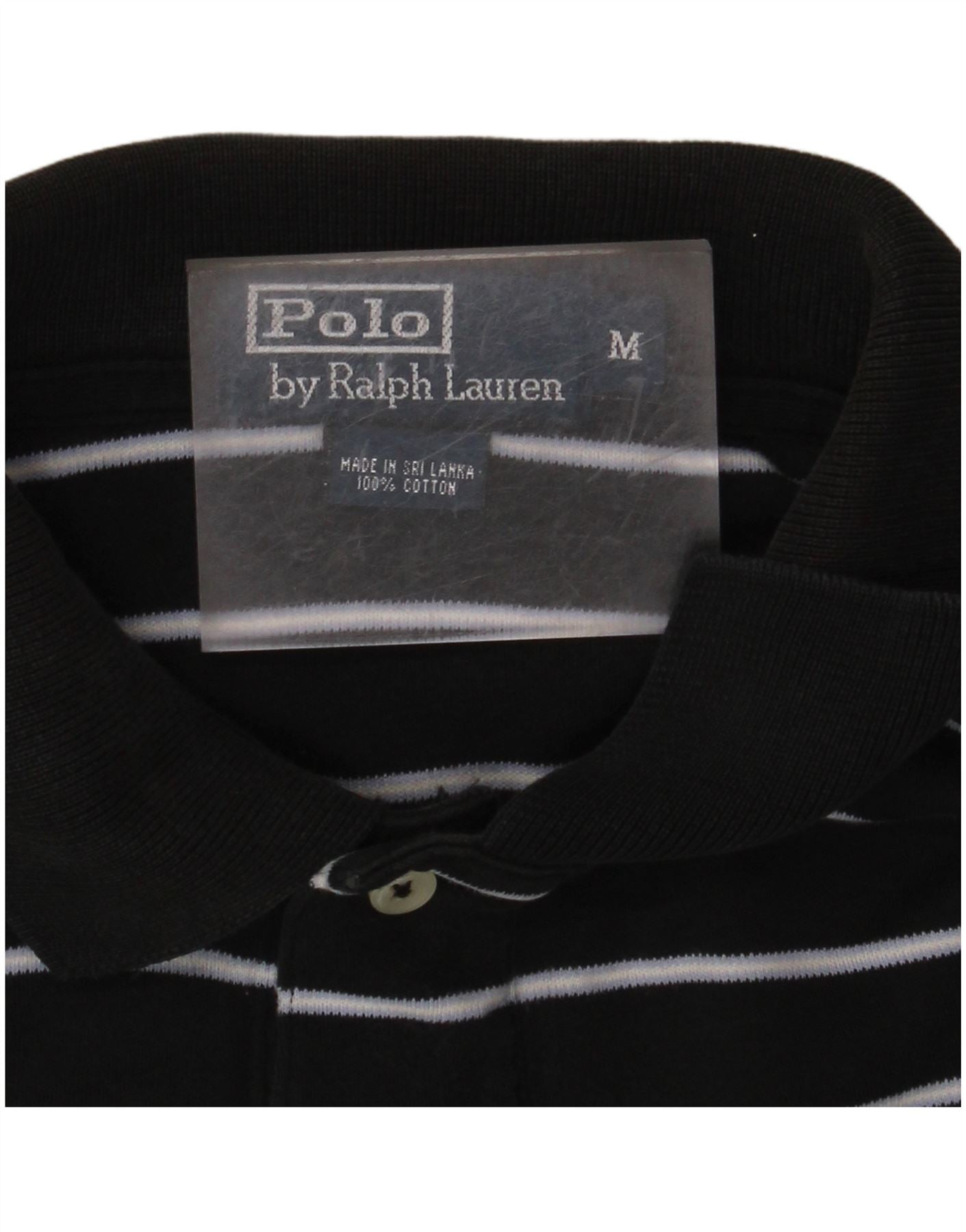 POLO RALPH LAUREN Mens Polo Shirt Medium Black Striped Cotton