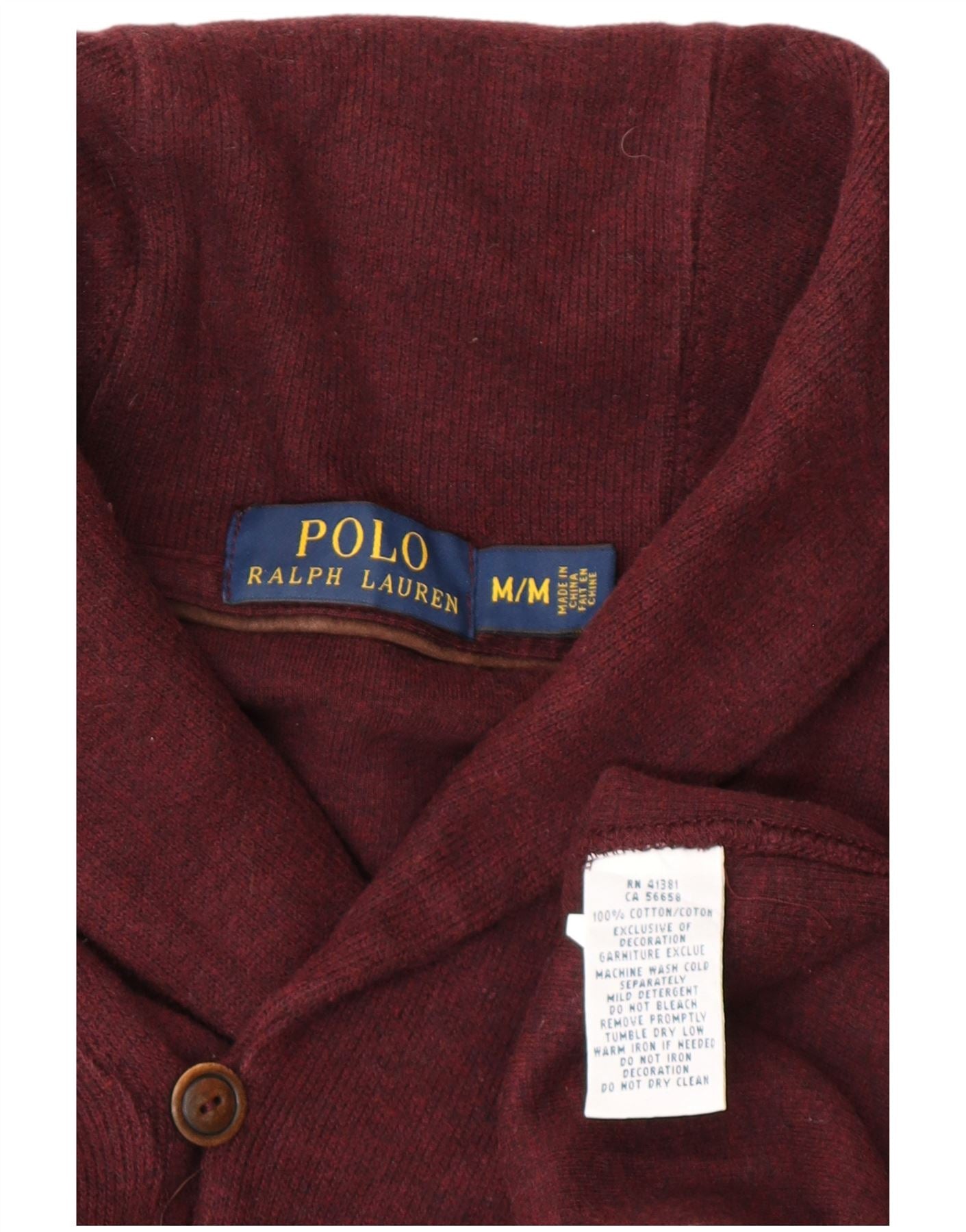 POLO RALPH LAUREN Mens Shawl Neck Jumper Sweater Medium Burgundy Cotton