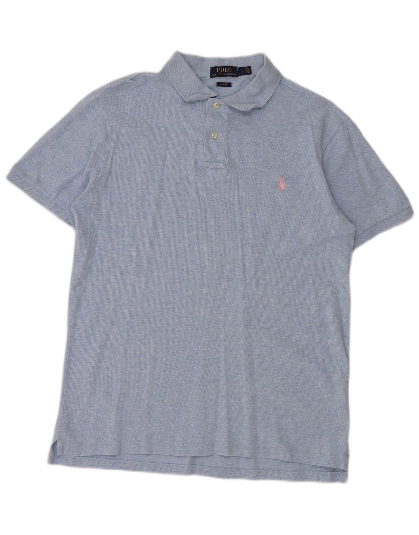 POLO RALPH LAUREN Mens Slim Fit Polo Shirt Large Blue Flecked Cotton