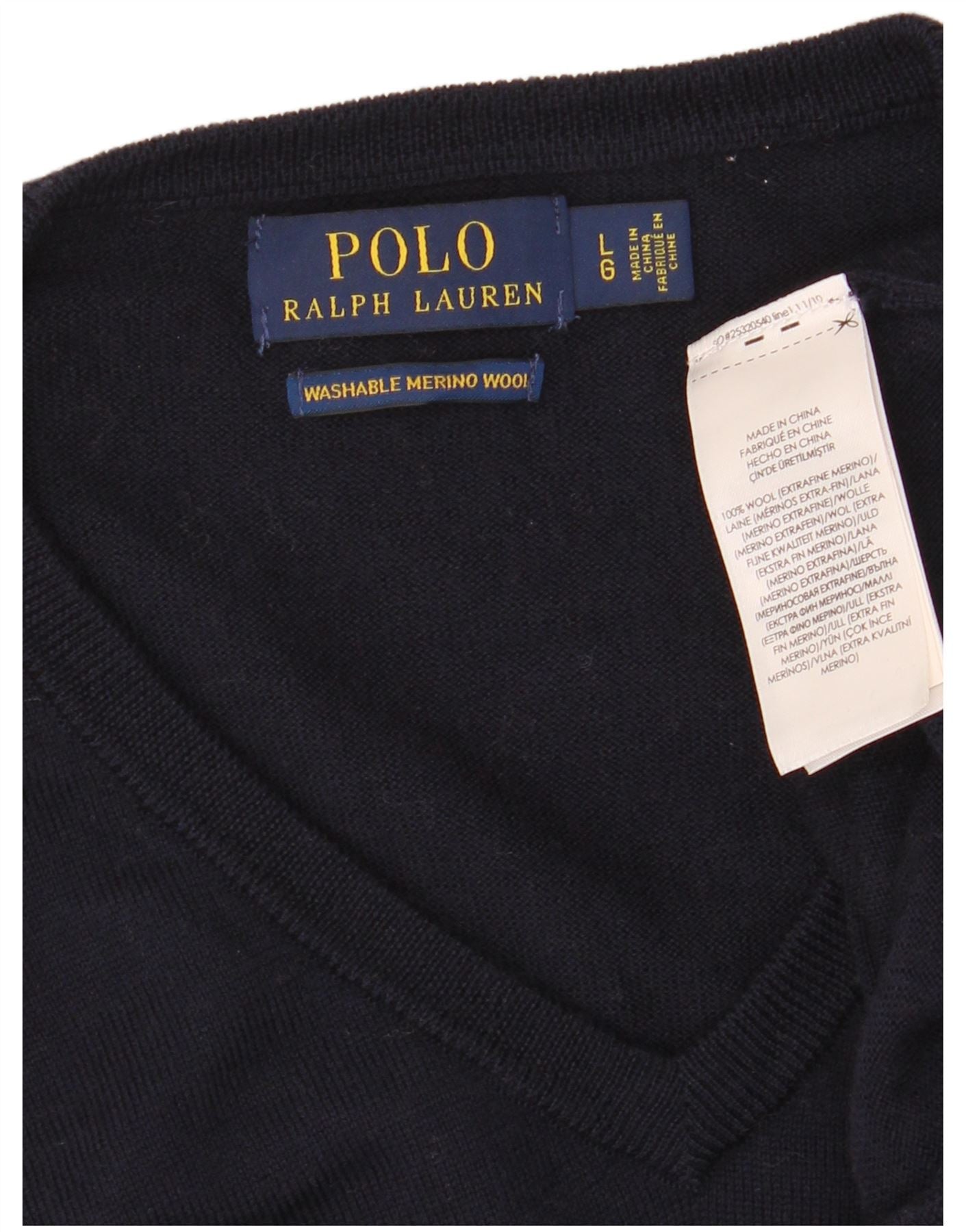 Polo Ralph Lauren Mens V-Neck Jumper Sweater Large Navy Blue Merino Wool
