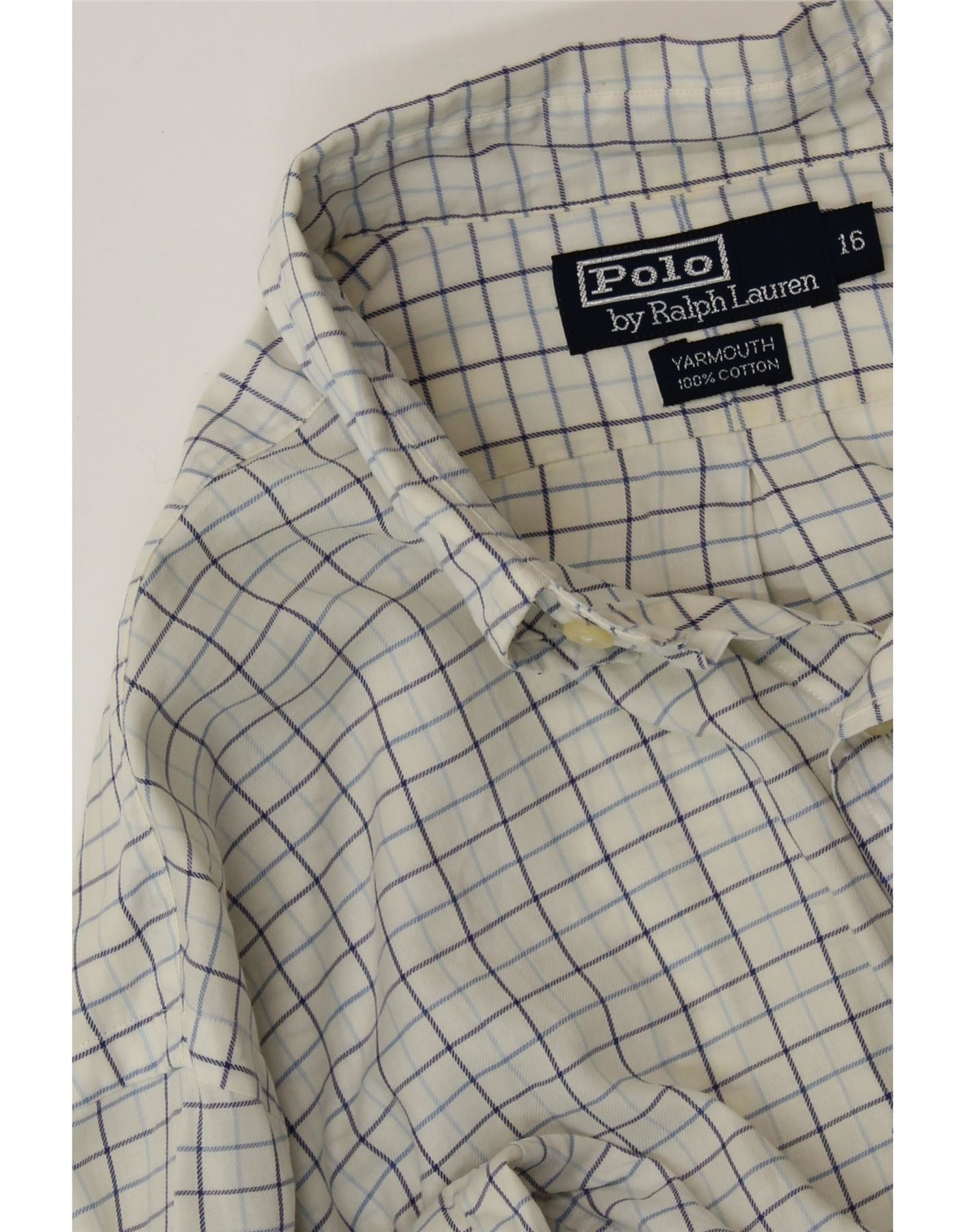 POLO RALPH LAUREN Mens Yarmouth Shirt Size 16 Large White Check Cotton