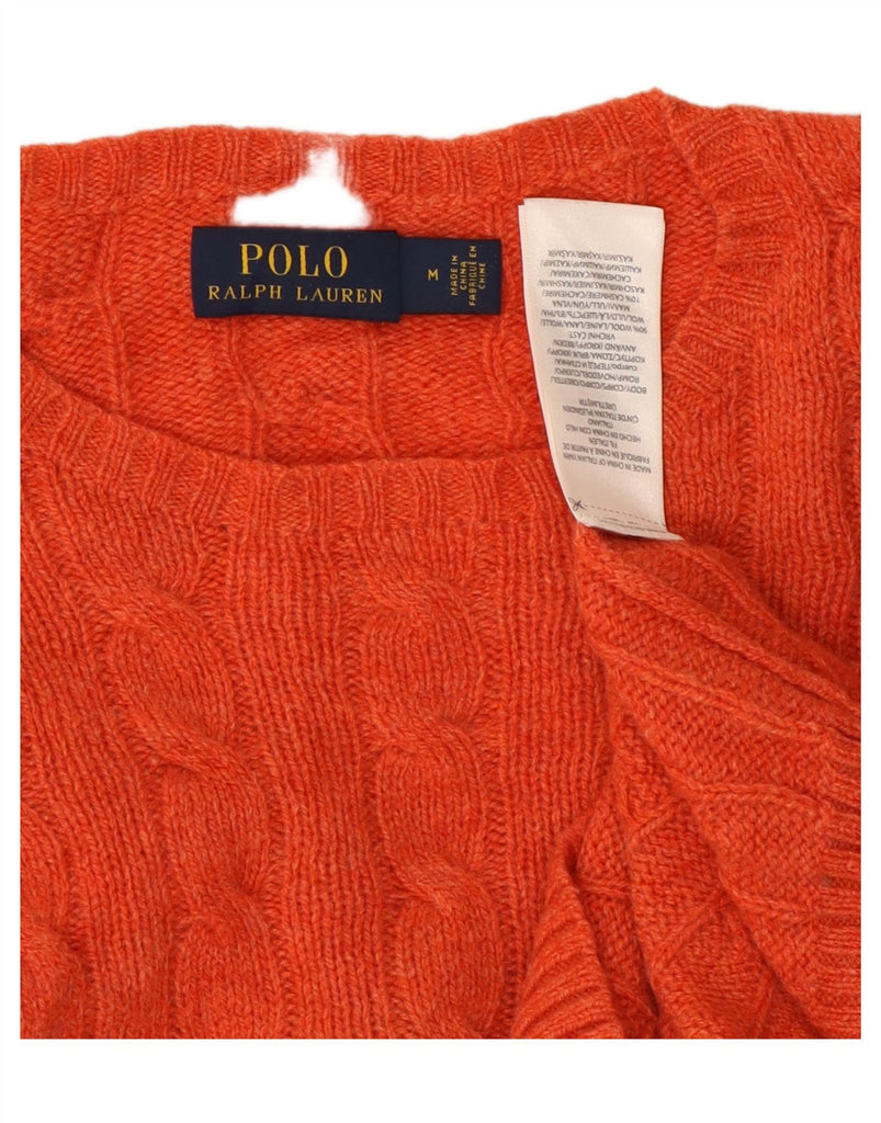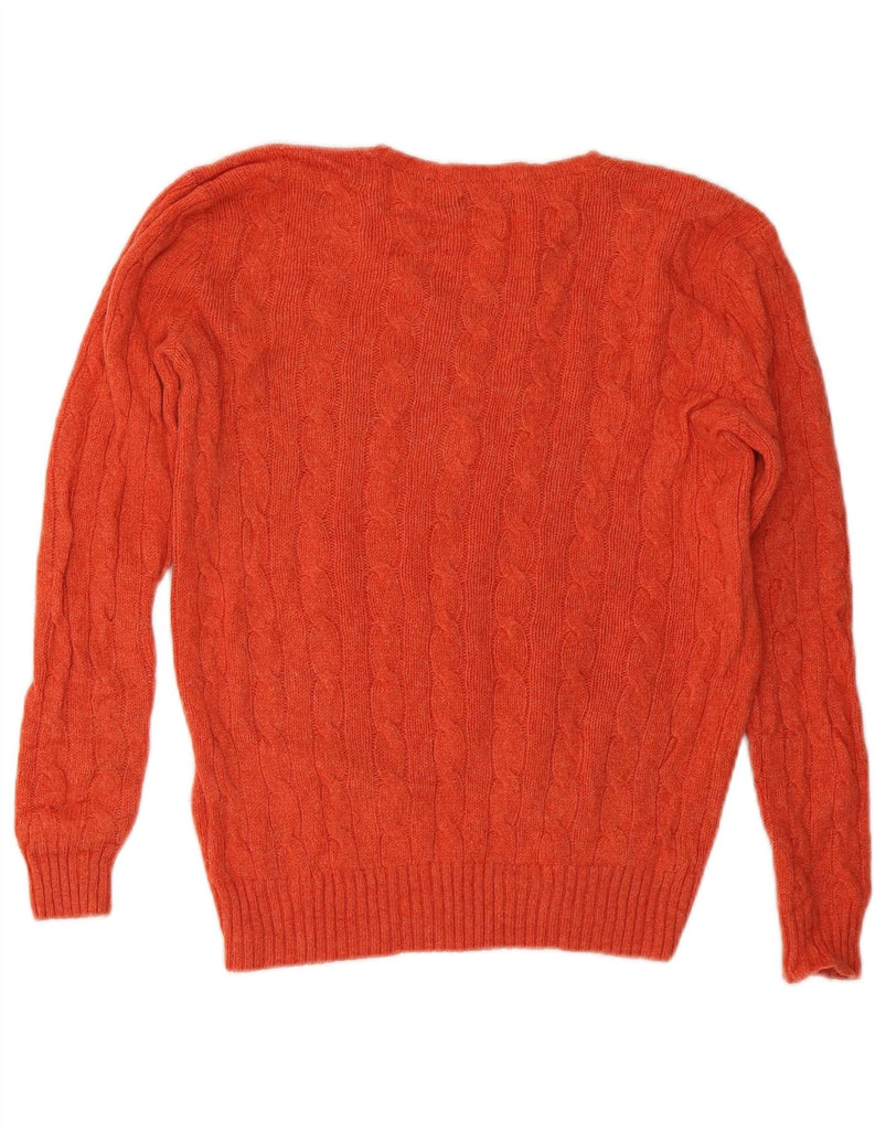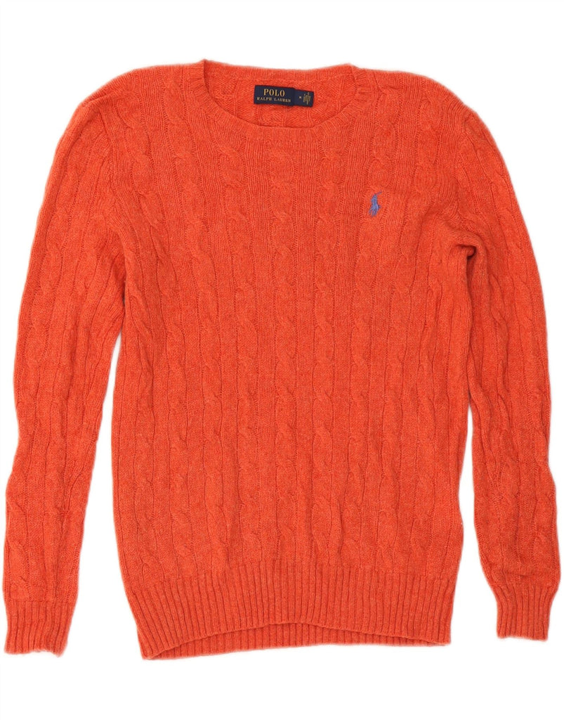 POLO RALPH LAUREN Womens Crew Neck Jumper Sweater UK 12 Medium Orange Wool