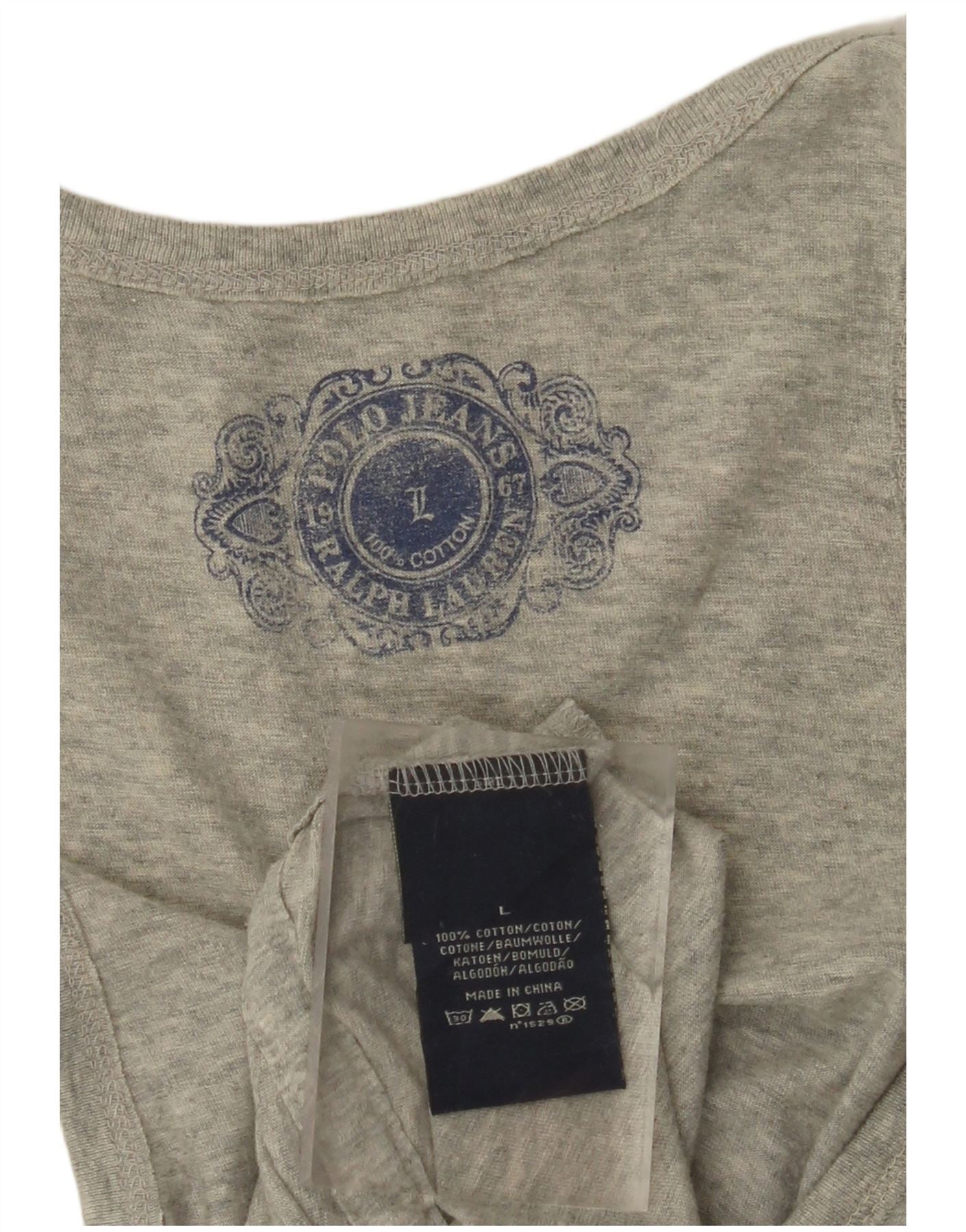 POLO RALPH LAUREN Womens Graphic Vest Top UK 14 Large Grey Cotton