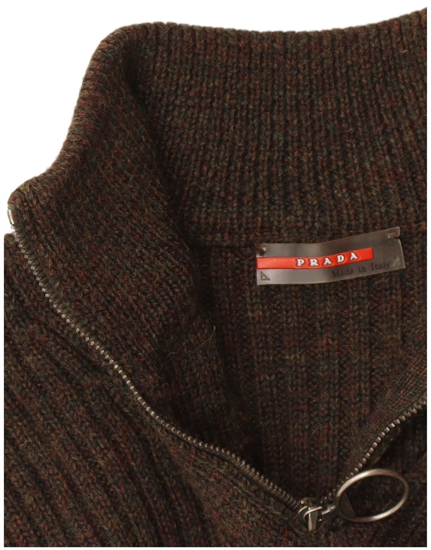 PRADA Womens Zip Neck Jumper Sweater IT 48 XL Brown Virgin Wool