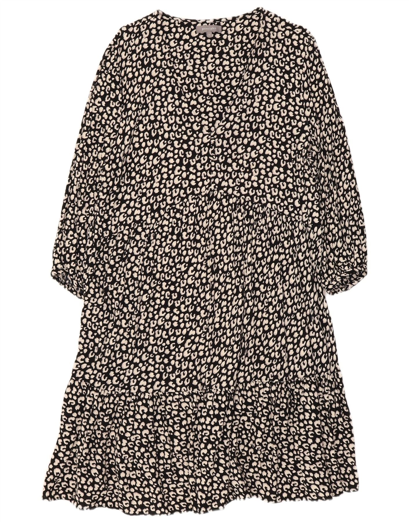 PRINCIPLES Womens 3/4 Sleeve Tiered Dress UK 16 Large Black Animal Print