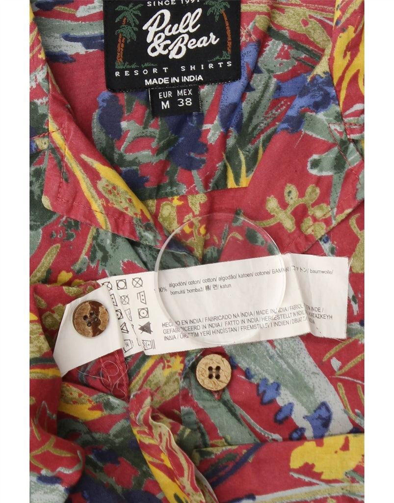 PULL & BEAR Mens Short Sleeve Shirt Medium Pink Floral Cotton