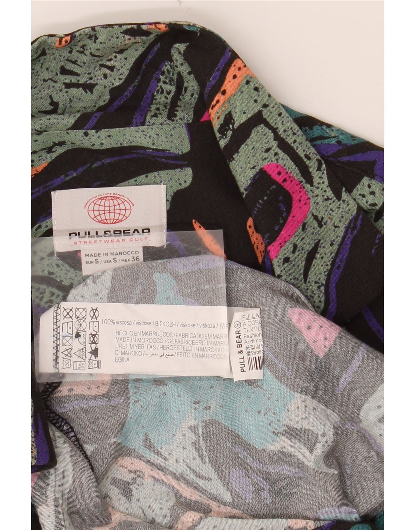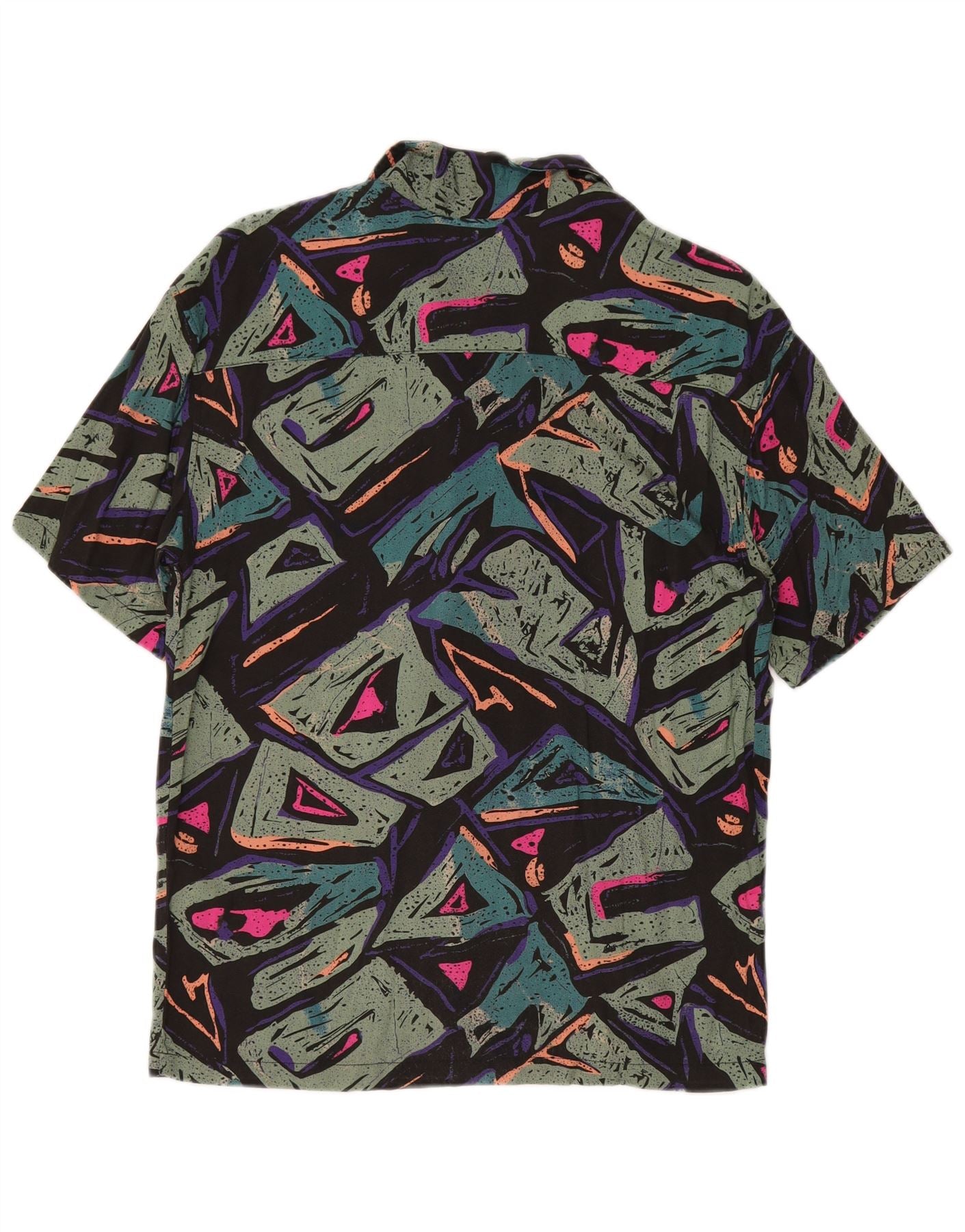 PULL & BEAR Mens Short Sleeve Shirt Small Multicoloured Geometric Viscose