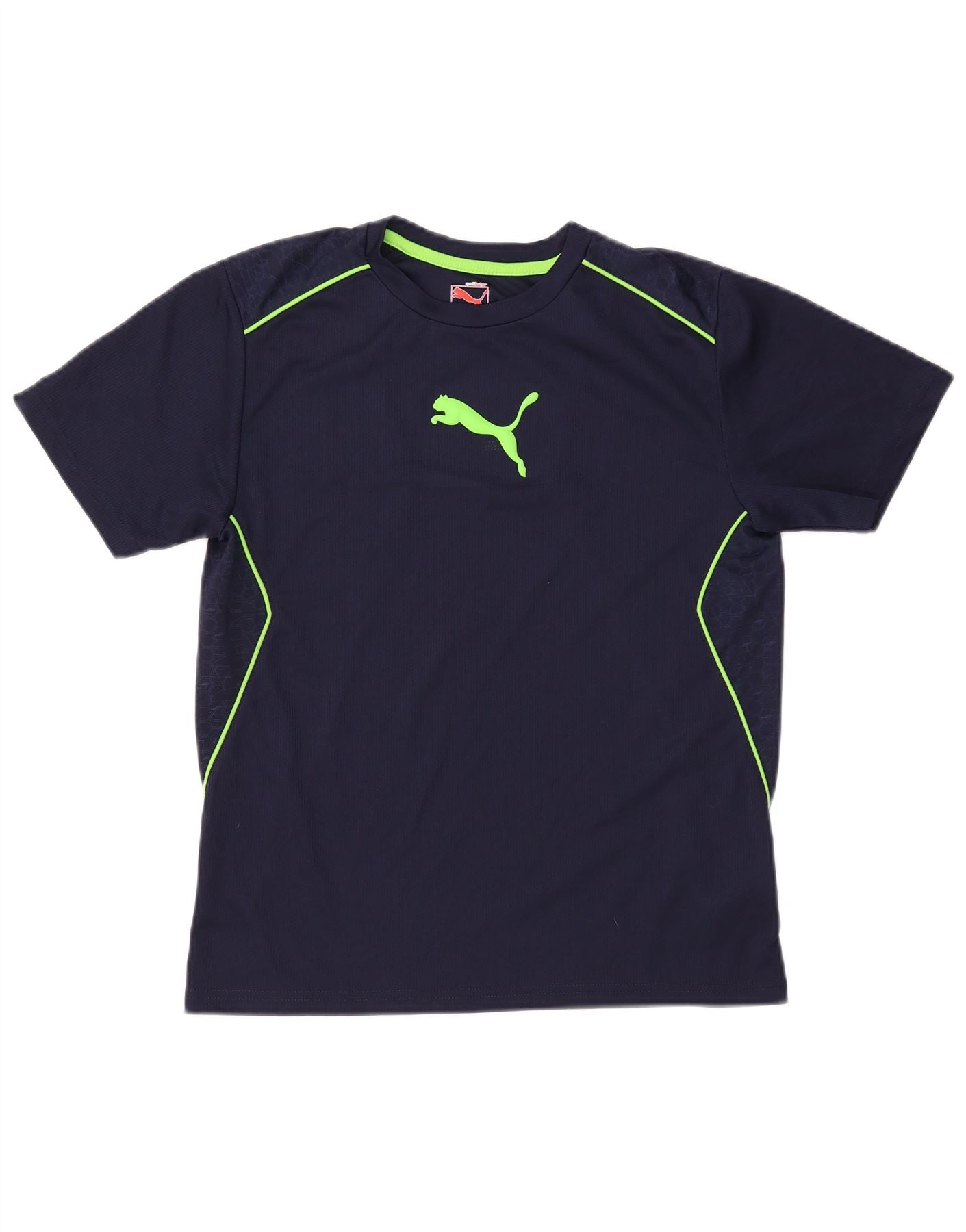 Puma Boys Graphic T-Shirt Top 11-12 Years Large Navy Blue Striped Polyester