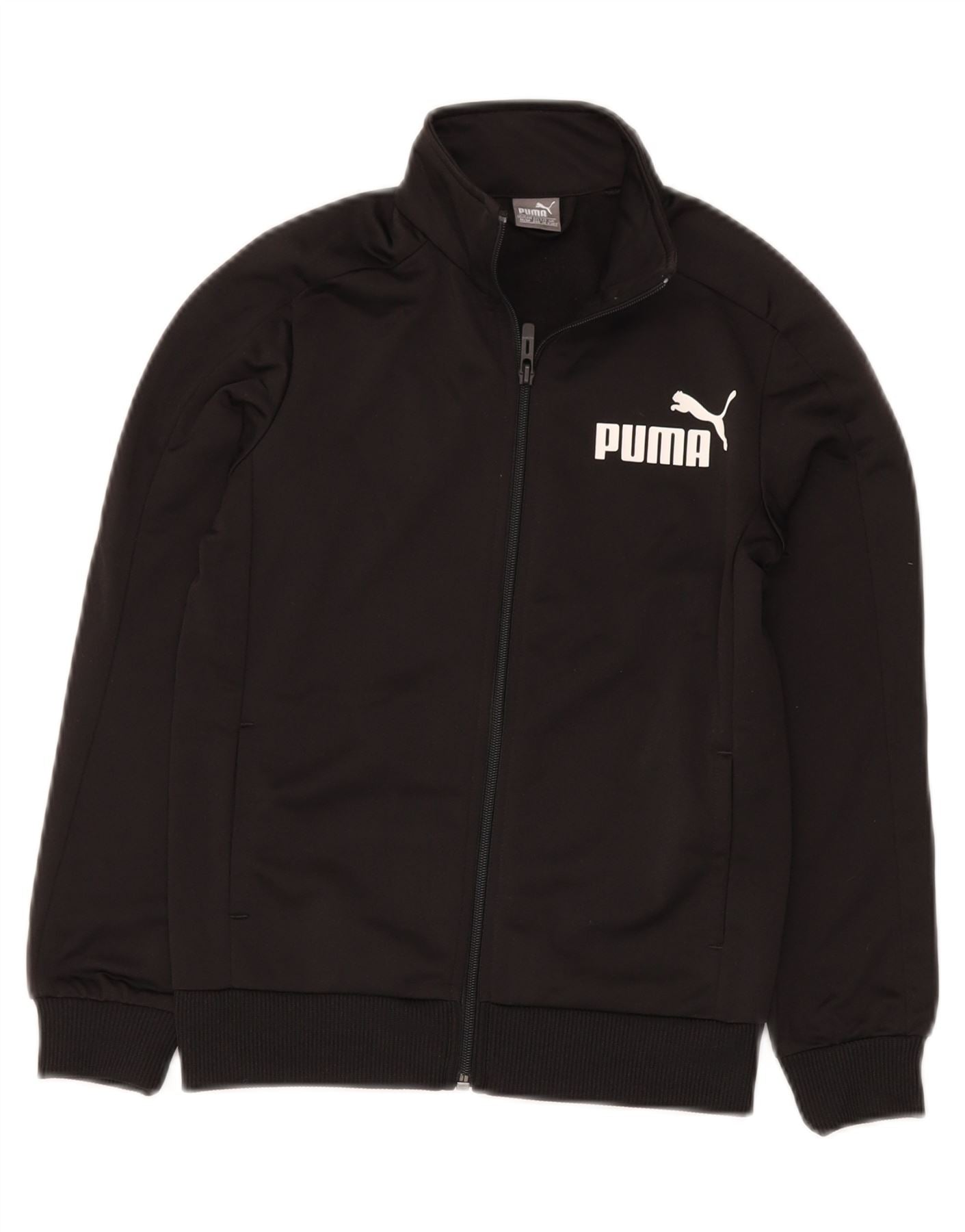 PUMA Boys Graphic Tracksuit Top Jacket 9-10 Years Medium Black Polyester