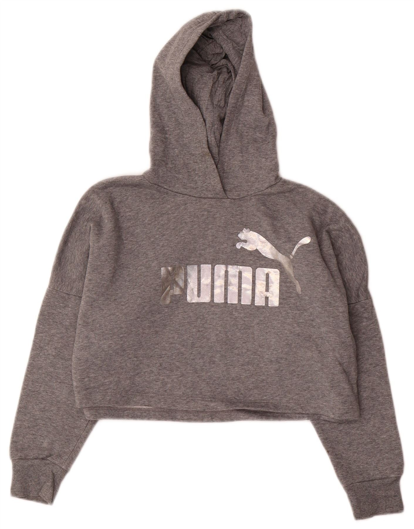 PUMA Girls Crop Graphic Hoodie Jumper 9-10 Years Grey Cotton