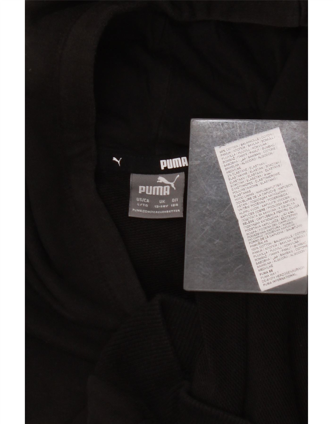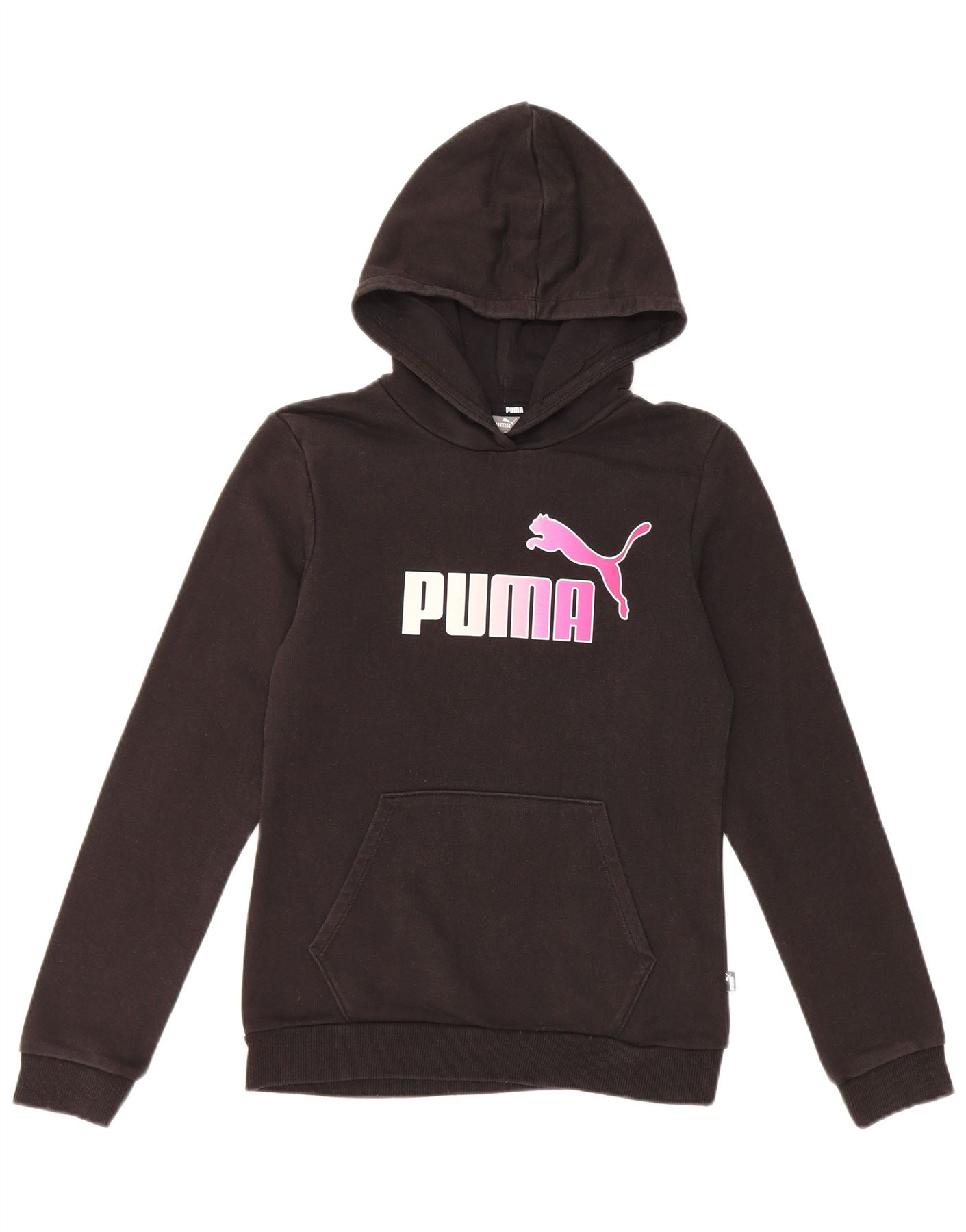 PUMA Girls Graphic Hoodie Jumper 13-14 Years Black Cotton