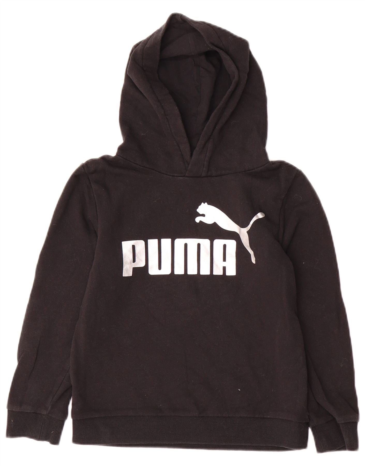 PUMA Girls Graphic Hoodie Jumper 7-8 Years Black Cotton