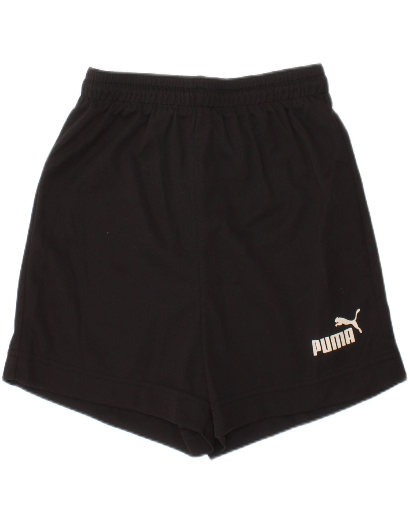 - AI Description: This Puma girls casual shorts are crafted from smooth black polyester jersey. They feature an elasticated pull-on waist for comfort and an athletic regular fit. A white Puma logo graphic is subtly placed on the leg. Designed for sports like football, these shorts offer ease of movement and practical style.