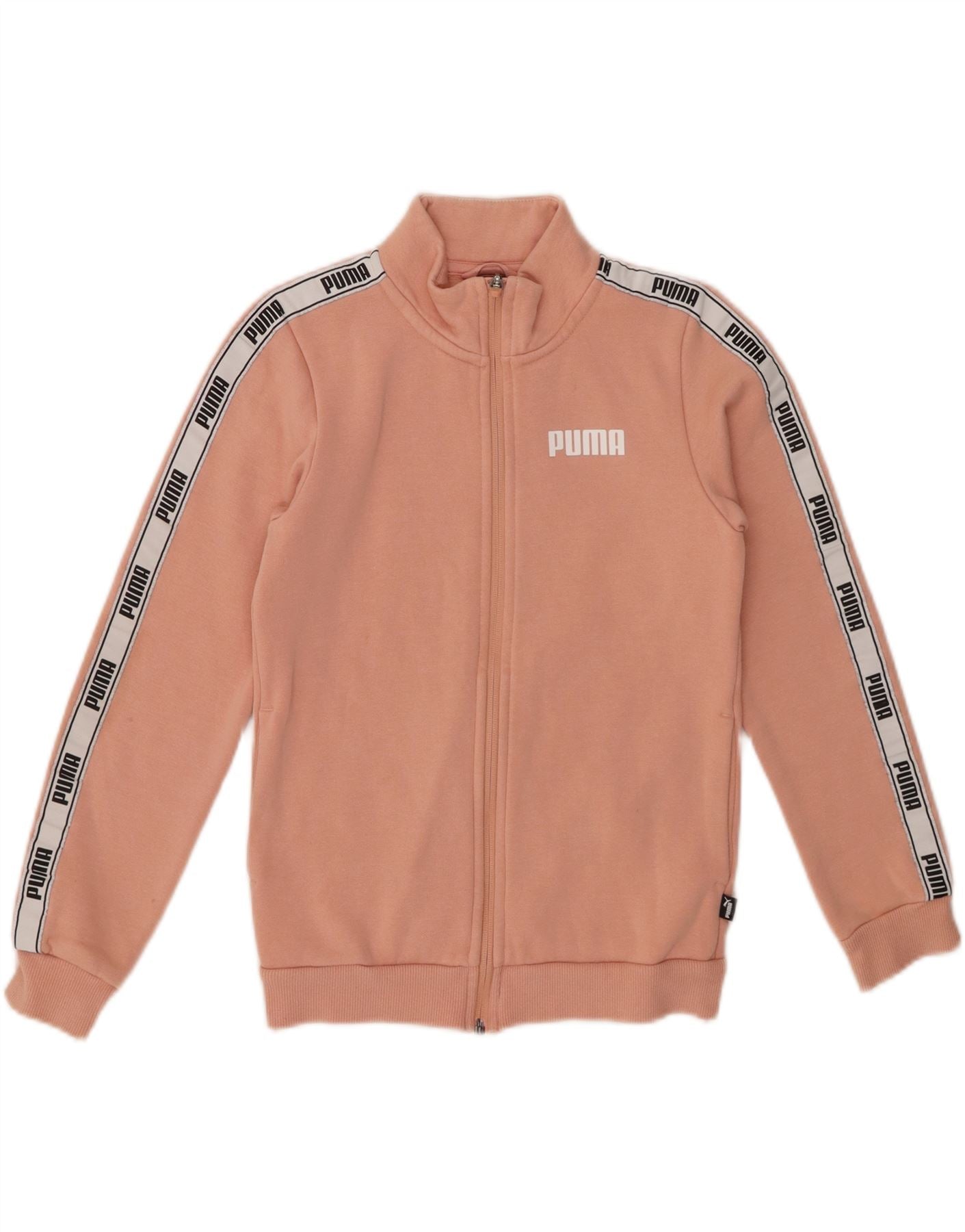 PUMA Girls Graphic Tracksuit Top Jacket 11-12 Years Pink Cotton