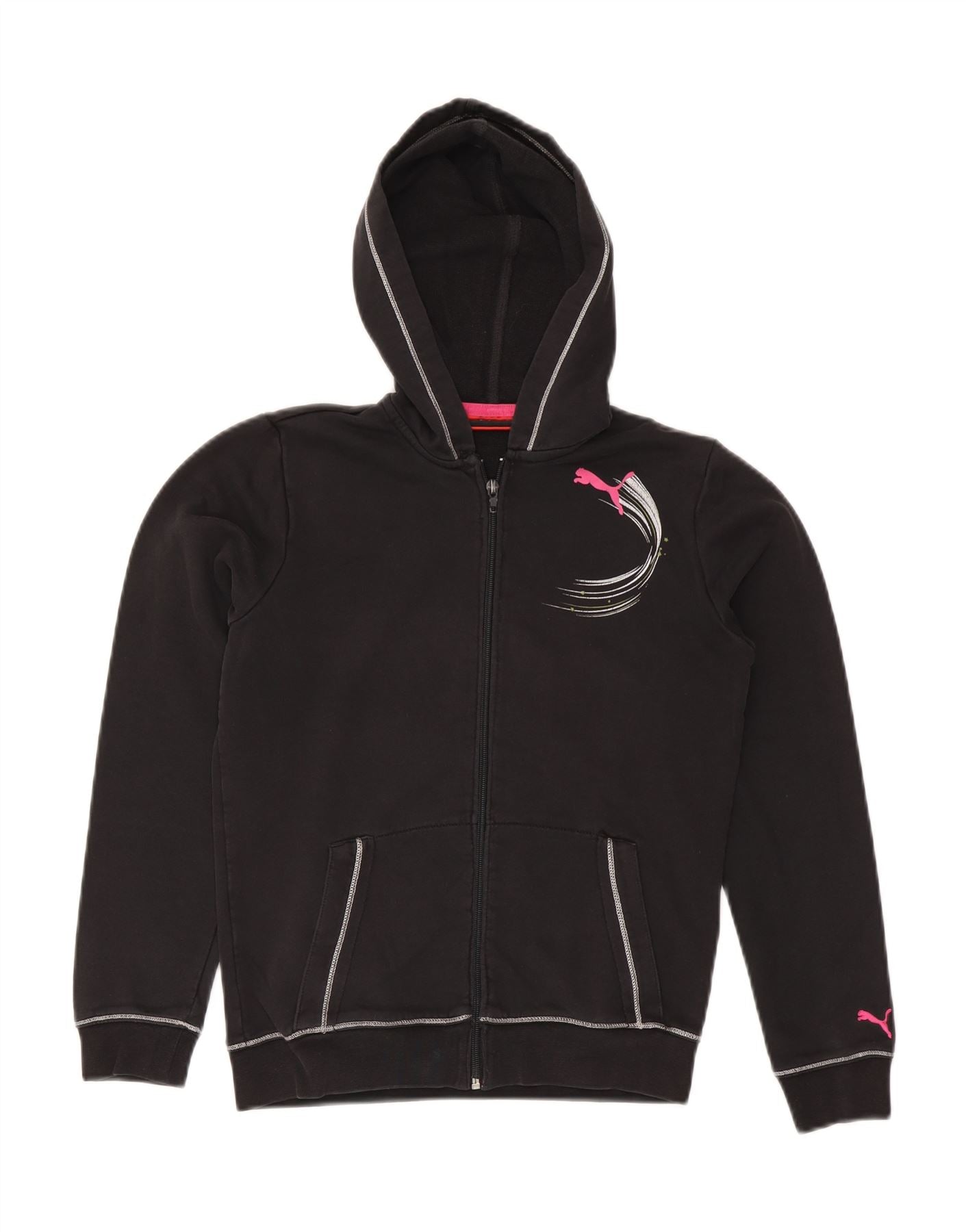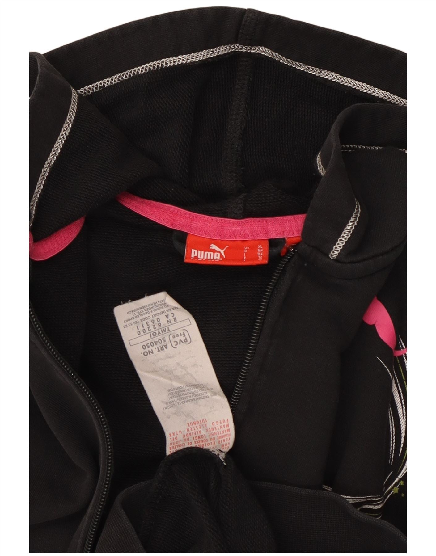 PUMA Girls Graphic Zip Hoodie Sweater 13-14 Years Black Cotton