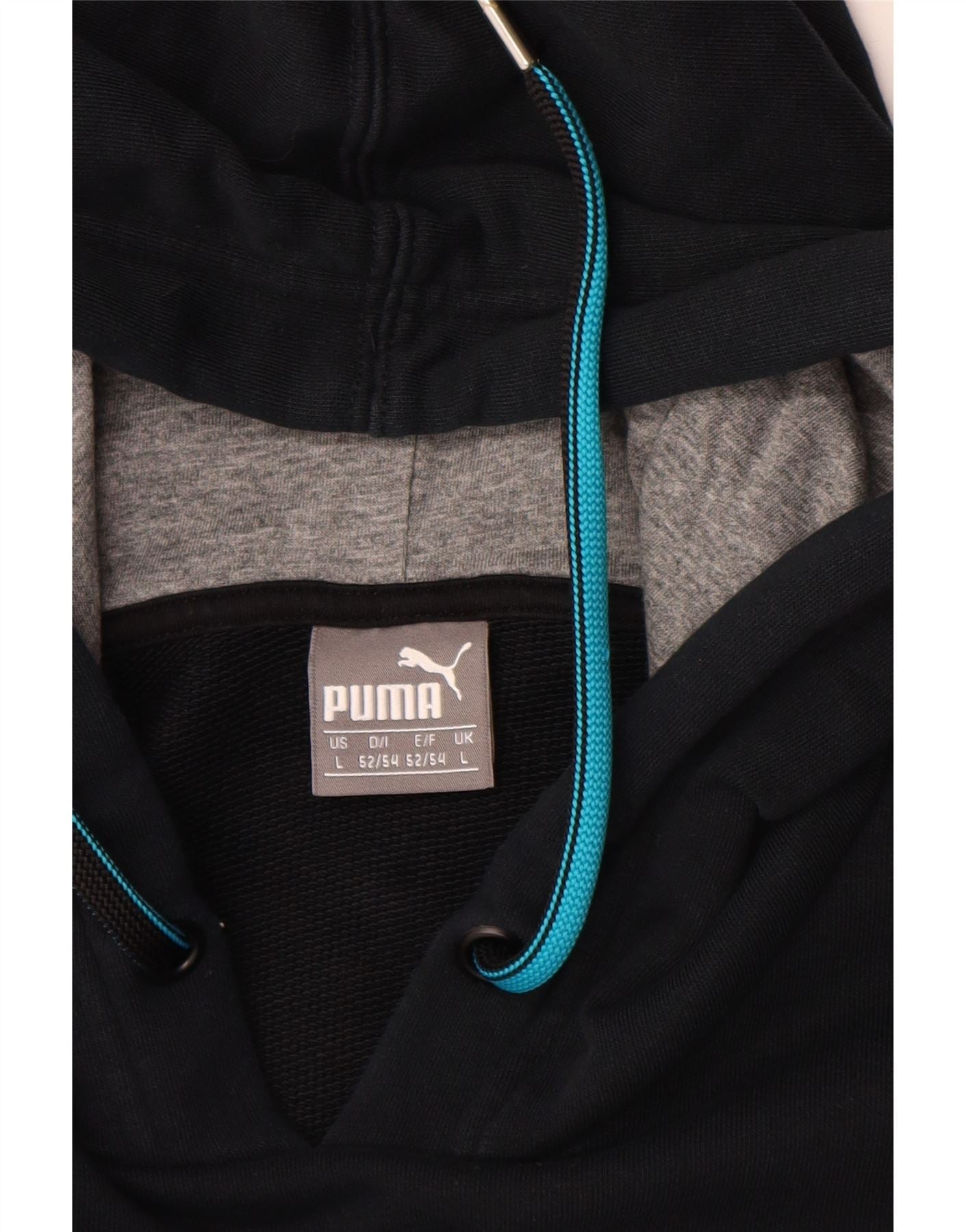 PUMA Mens Graphic Hoodie Jumper Large Black Colourblock Cotton