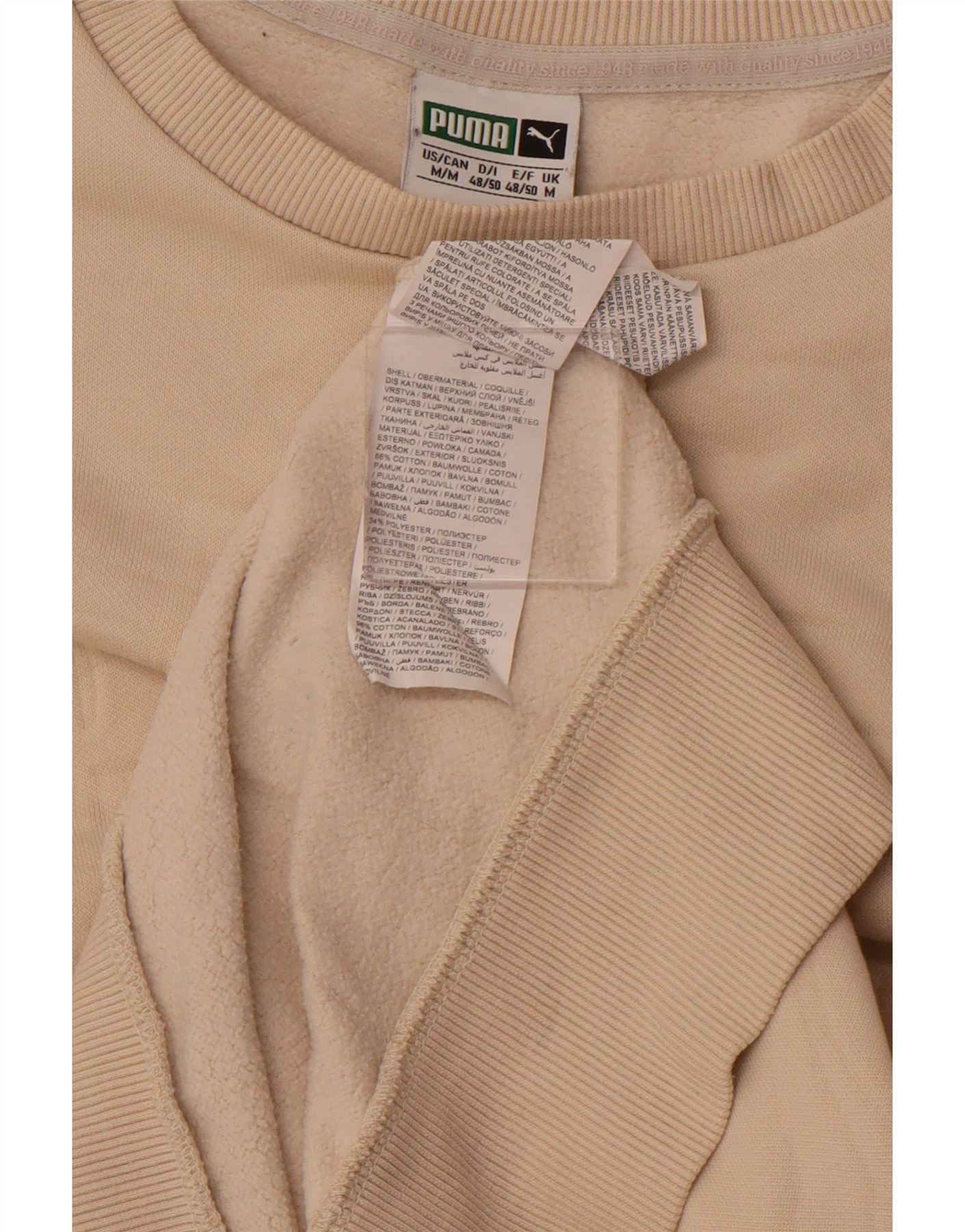 PUMA Mens Graphic Sweatshirt Jumper Medium Beige Cotton