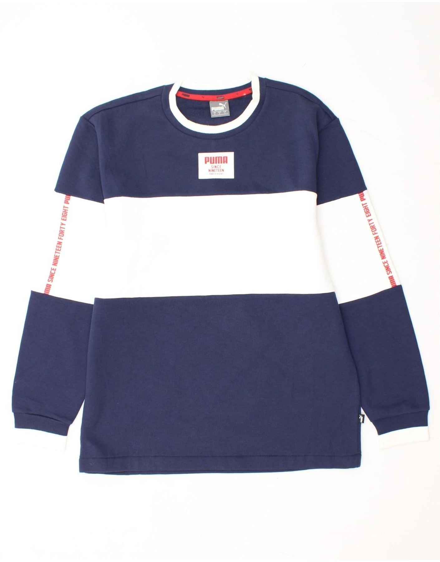 PUMA Mens Graphic Sweatshirt Jumper Small Navy Blue Colourblock