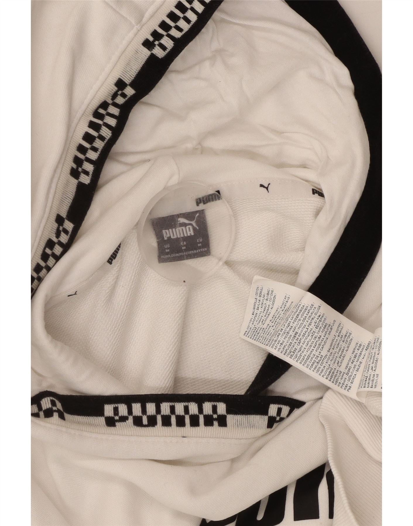 PUMA Womens Graphic Hoodie Jumper UK 14 Medium White Cotton