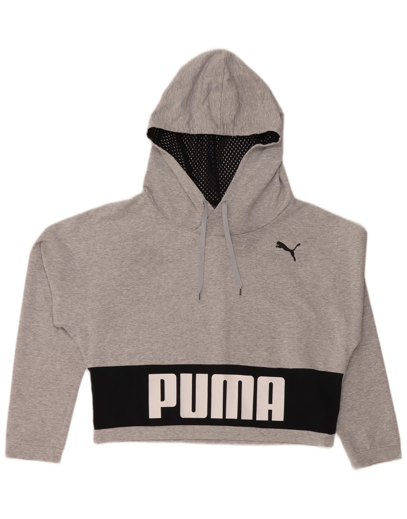 PUMA Womens Oversized Crop Hoodie Jumper UK 12 Medium Grey Colourblock
