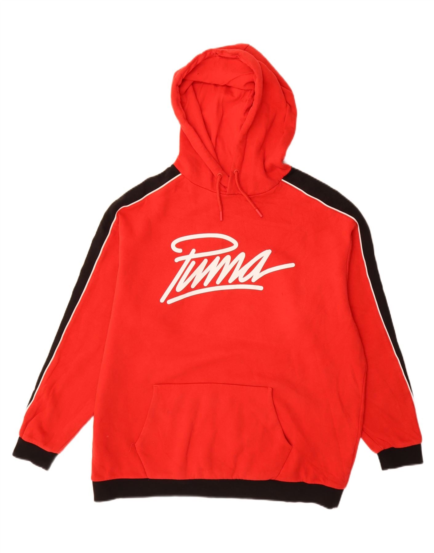 PUMA Womens Oversized Graphic Hoodie Jumper UK 14 Large Red Colourblock