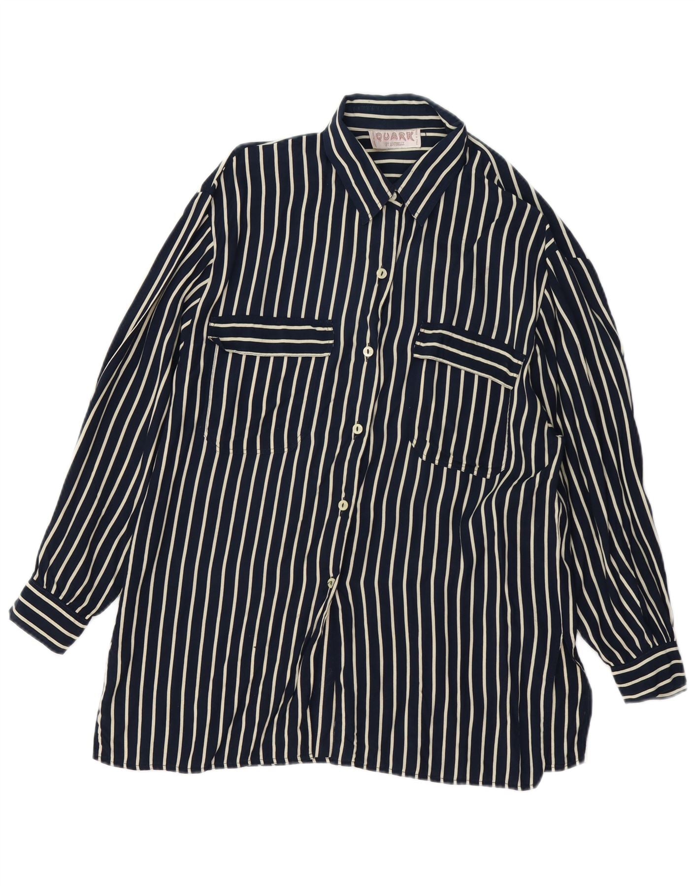 QUARK Womens 3/4 Sleeve Shirt UK 16 Large Navy Blue Striped Viscose