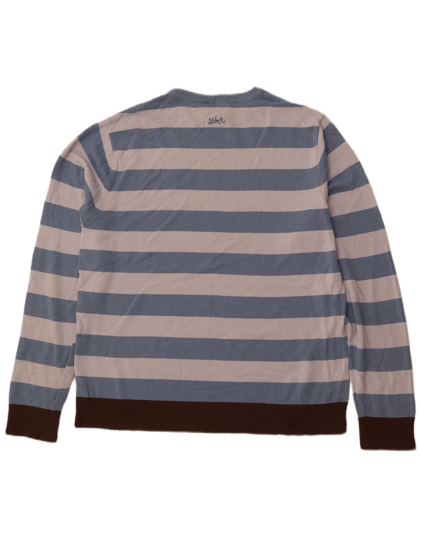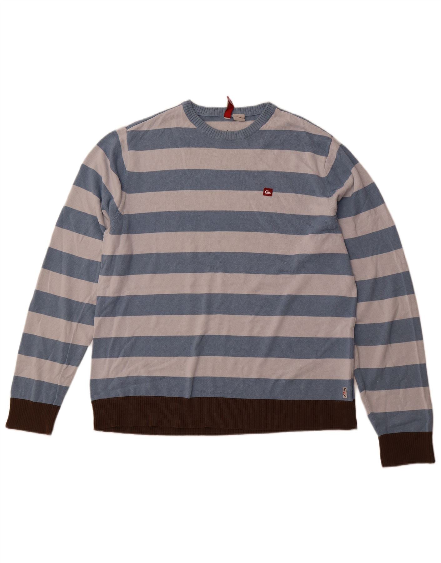 QUIKSILVER Mens Crew Neck Jumper Sweater Large Blue Striped Acrylic