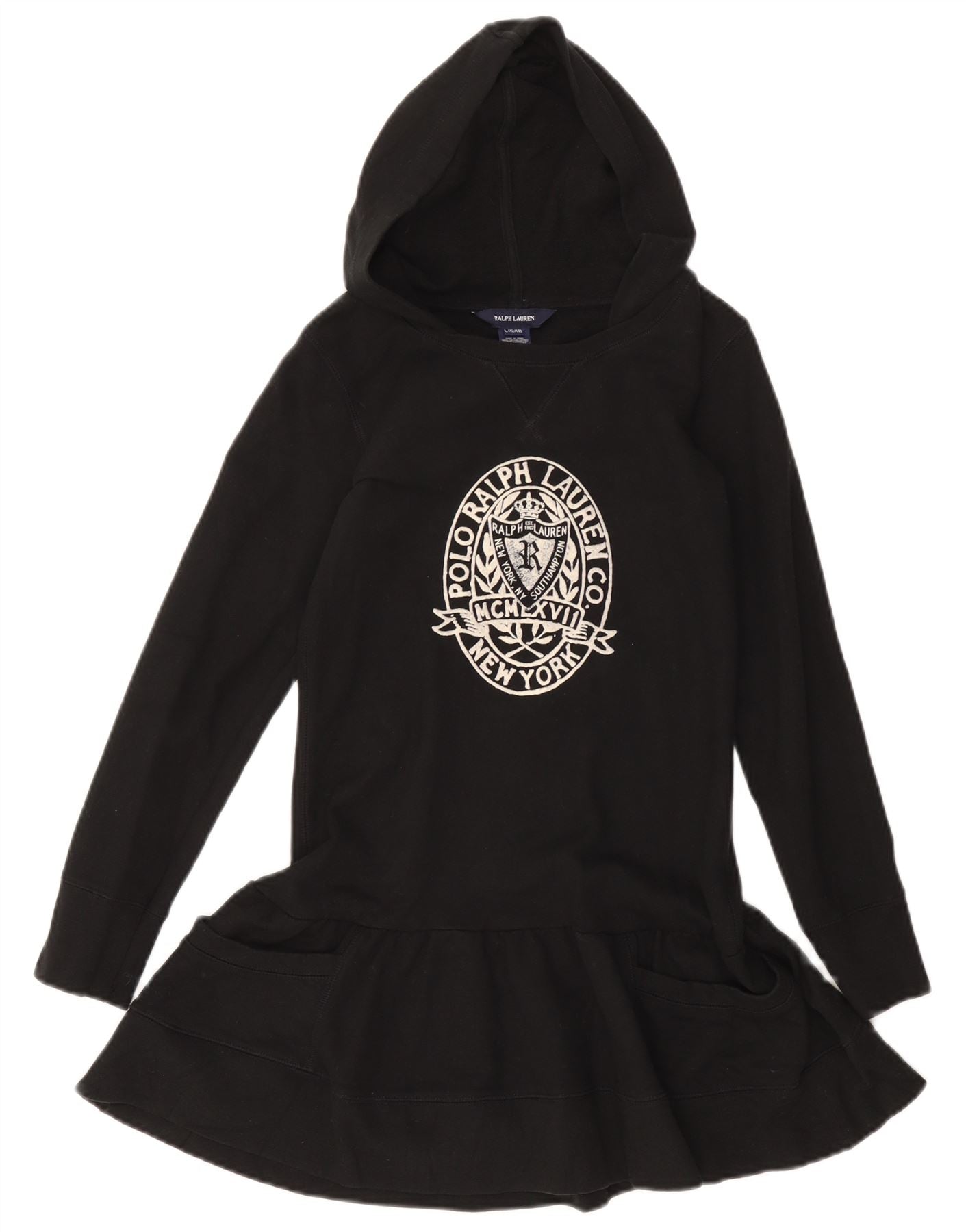 Ralph Lauren Girls Graphic Drop Waist Dress 12-13 Years Large Black Cotton