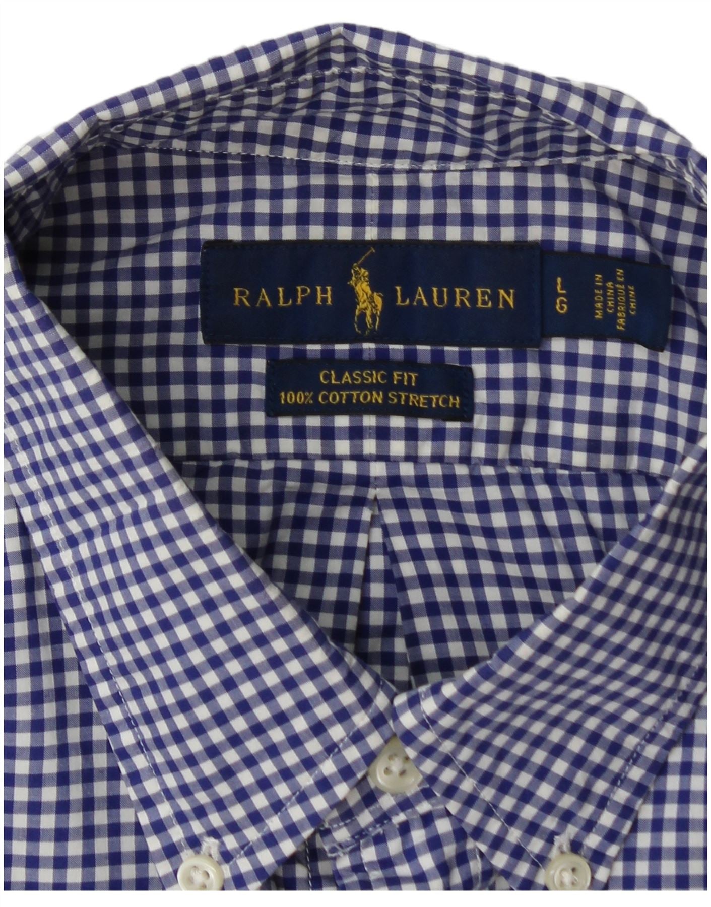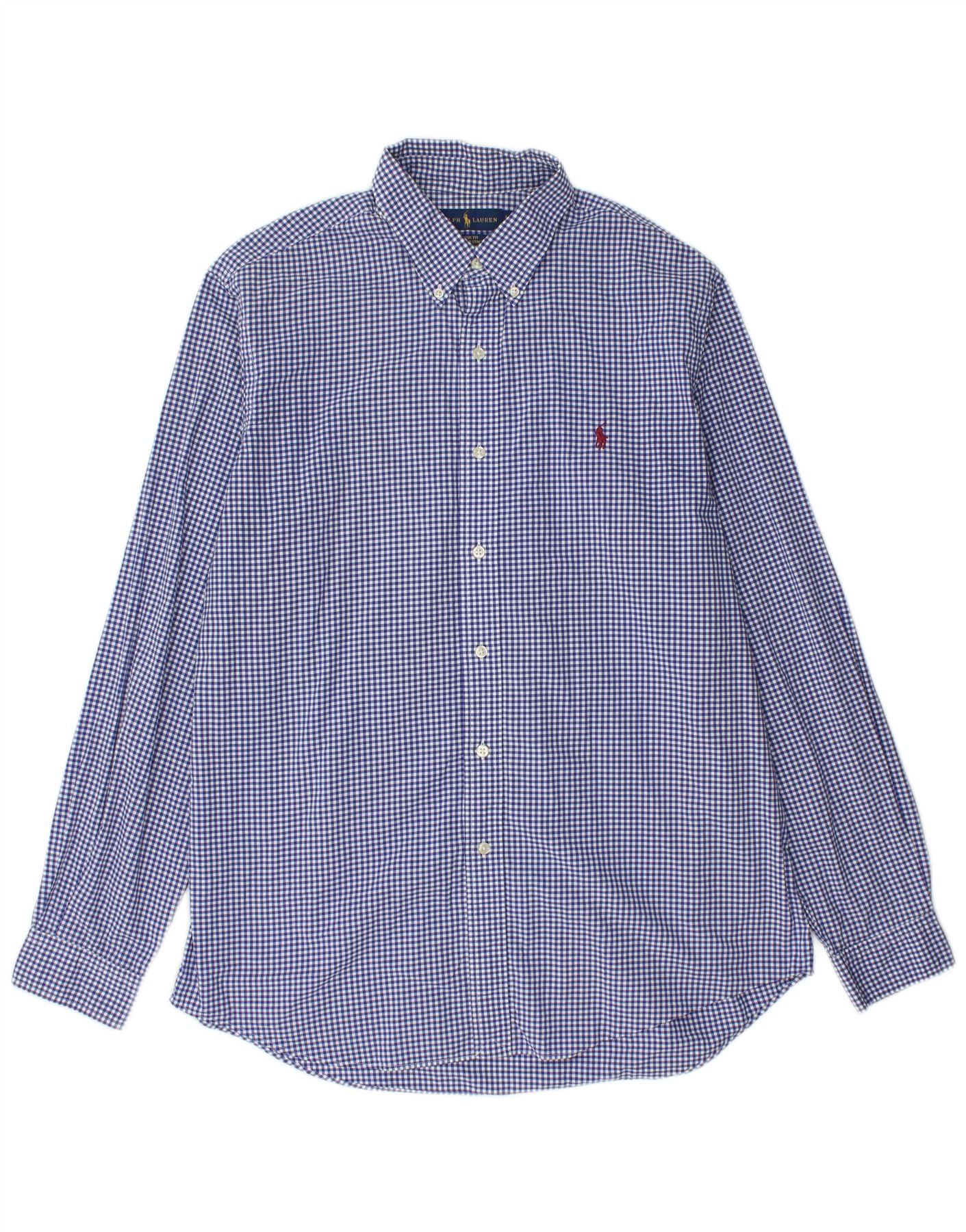 RALPH LAUREN Mens Classic Fit Shirt Large Blue Gingham Cotton