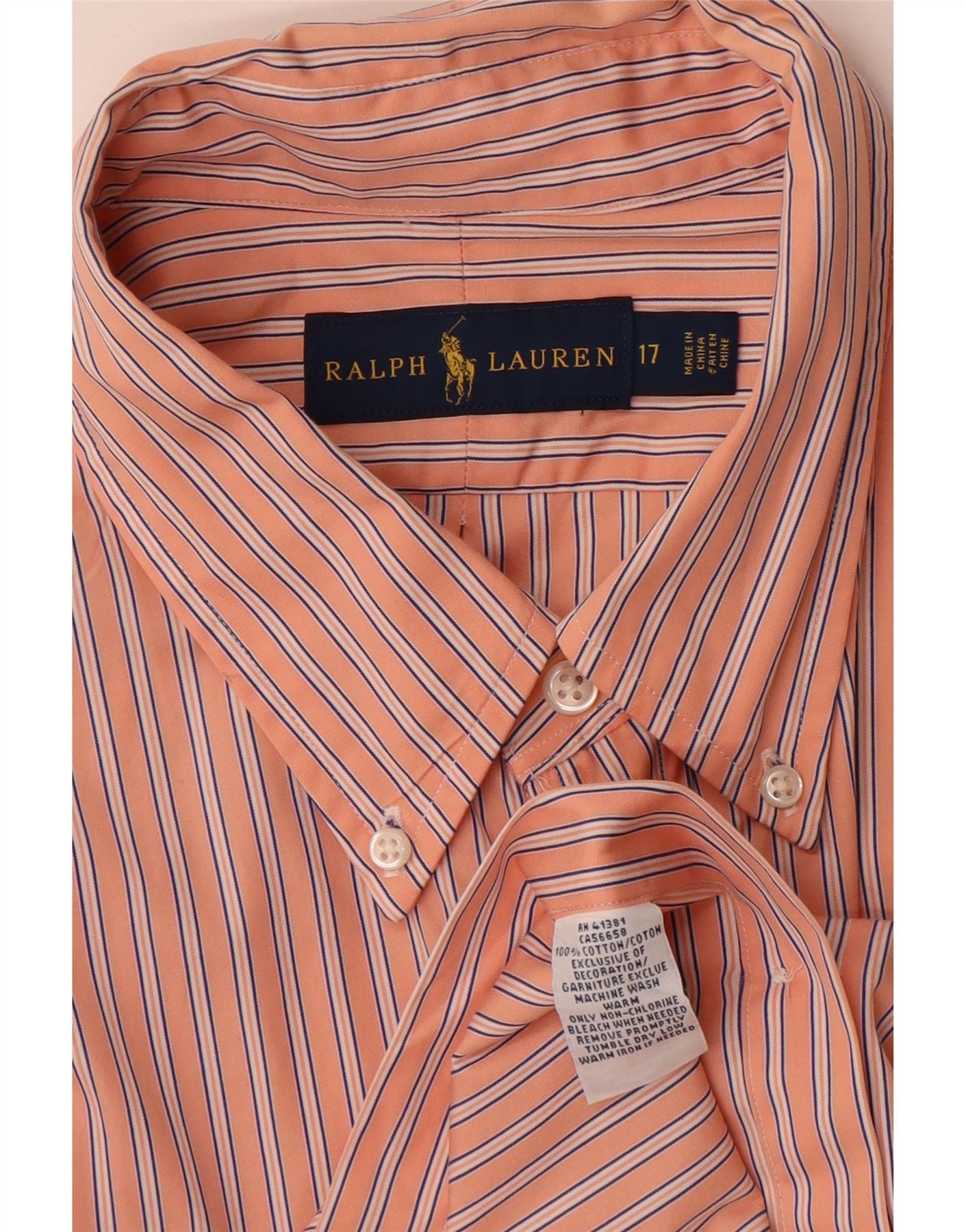 RALPH LAUREN Mens Shirt Size 17 XL Orange Striped Cotton