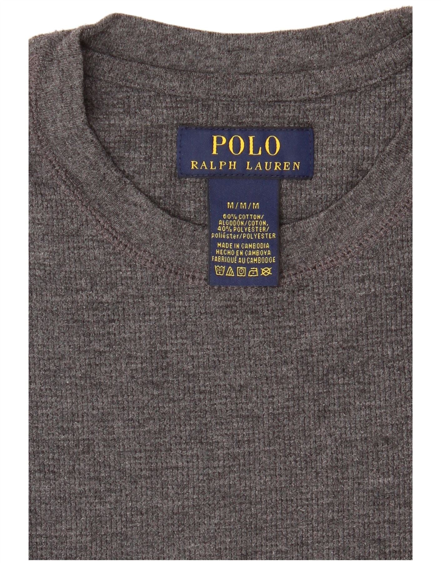 RALPH LAUREN Mens Top Long Sleeve Medium Grey Cotton