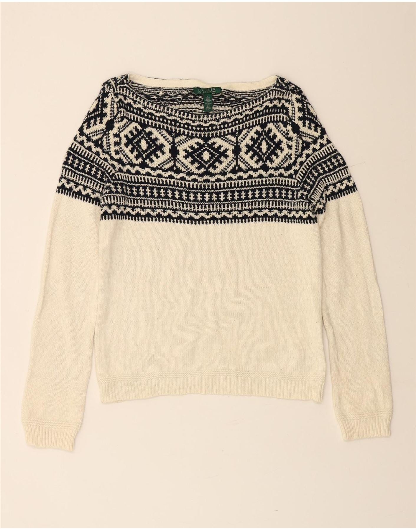RALPH LAUREN Womens Boat Neck Jumper Sweater UK 16 Large Off White