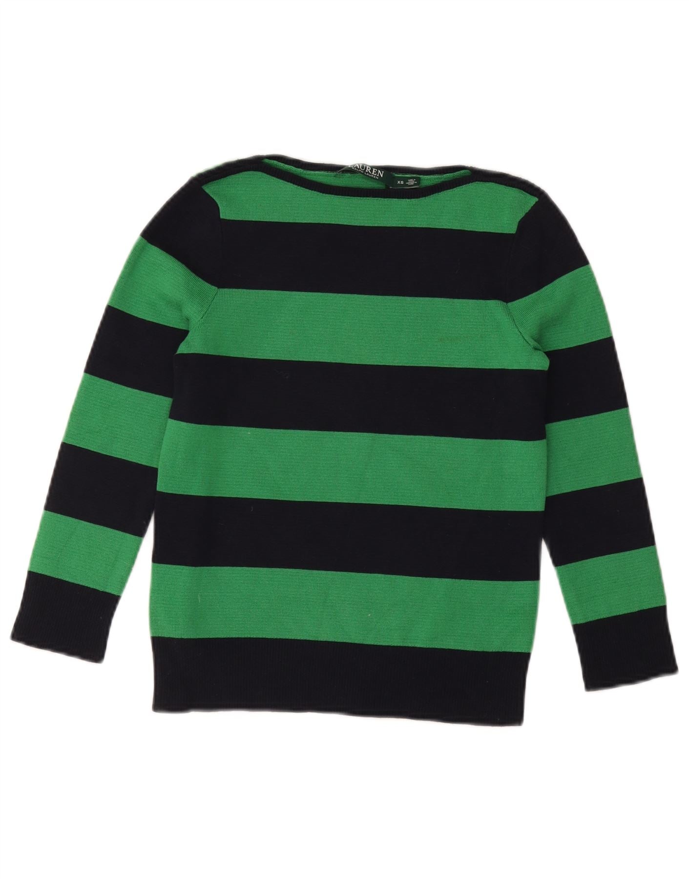 RALPH LAUREN Womens Boat Neck Jumper Sweater UK 6 XS Green Striped Cotton